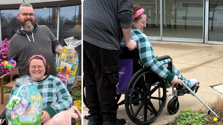 Meanwhile, her husband Jesse has been balancing taking working extra shifts to make ends meet and coordinate with friends and family to completely overhaul their home so that it can welcome her when she finally rolls back in the door. All while spending every moment he can with her, having spent all but three of the nights she’s been hospitalized sleeping in a chair next to her.