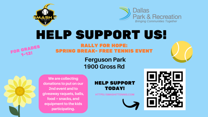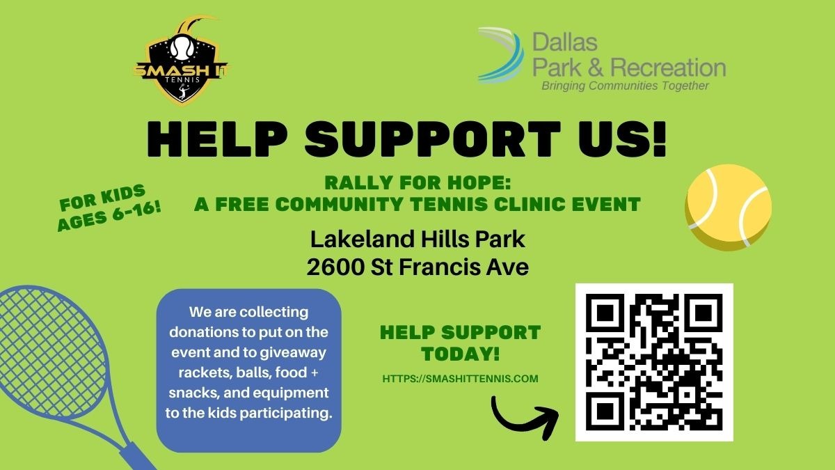 Because of our success, we are excited to announce that our next free community tennis clinic will take place in March! We are now collecting donations to help fund this upcoming event and expand our reach. Contributions will go directly toward providing tennis rackets, balls, court equipment, food and snacks, and other essential supplies for the kids who attend. Our goal is to take our clinic to various parks and communities across Dallas to introduce tennis to as many people as possible!