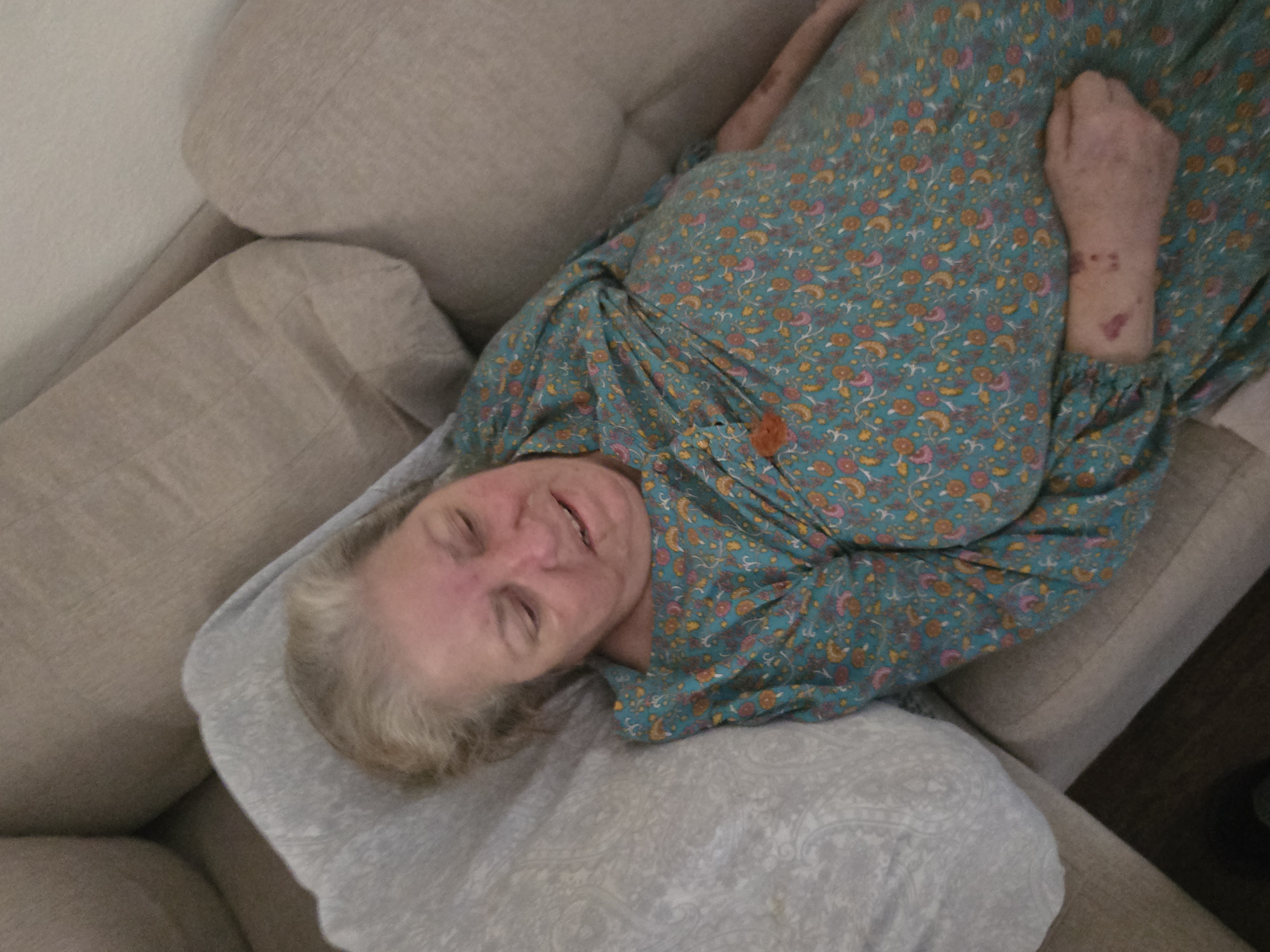 I would post a video to show the full extent of her condition, but I cannot post one here. There is a single picture in the media on this page that shows how far she's declined however. Again, she needs constant care, and despite getting treatment for some of the after-effects she's experiencing now, I'm not holding out much hope that things will get better.