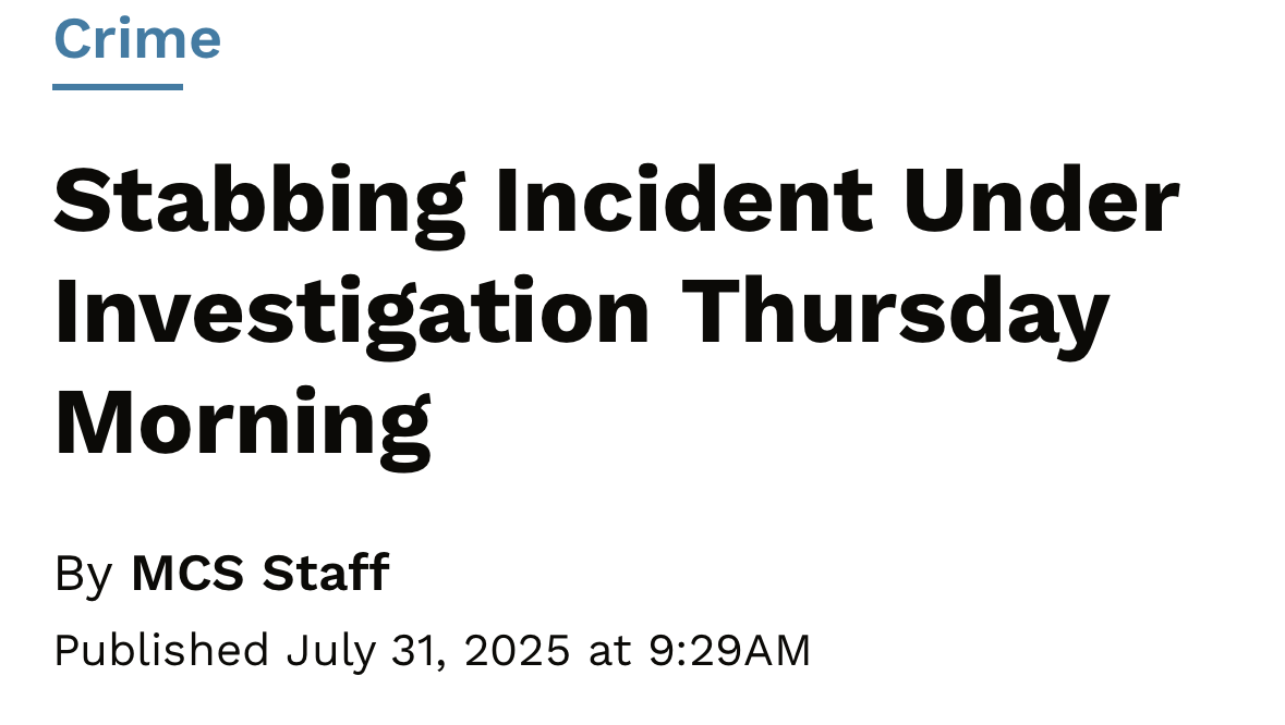 On the morning of July 31st 2025 I was walking with my daughter when someone approached us from be hide they said a few words I turned around to face them they then dropped there bag and walked towards me and suddenly pulled out a knife as they lunged towards me with the knife, I instinctively went to push my daughter out of harm's way, and that left me open for clean hit .