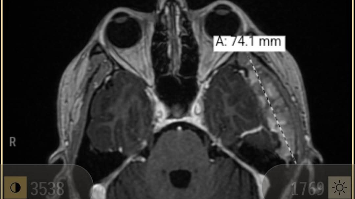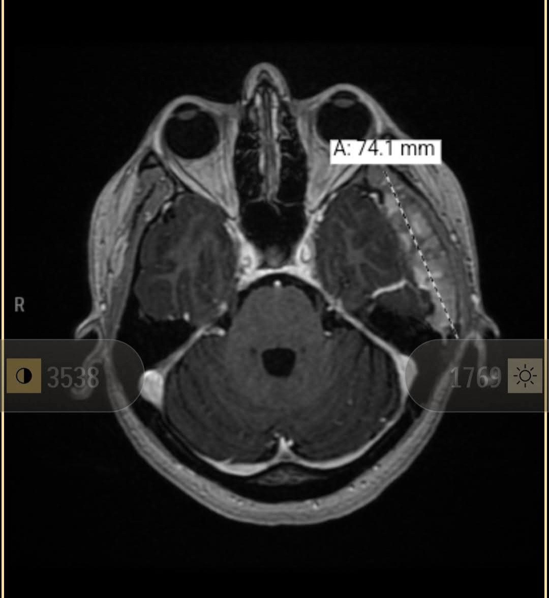 My neurologist team believes it is fibrous dysplasia (extra bone growth of the skull) based on the tests that have come back, and hope to treat it with medication and other methods to decrease the size before considering a full removal, which would require a major reconstructive surgery of my skull. If they did have to remove the mass, a large chunk of skull that has been bulged out from it growing would have to be removed and replaced with a custom 3D printed plate to cover my brain.