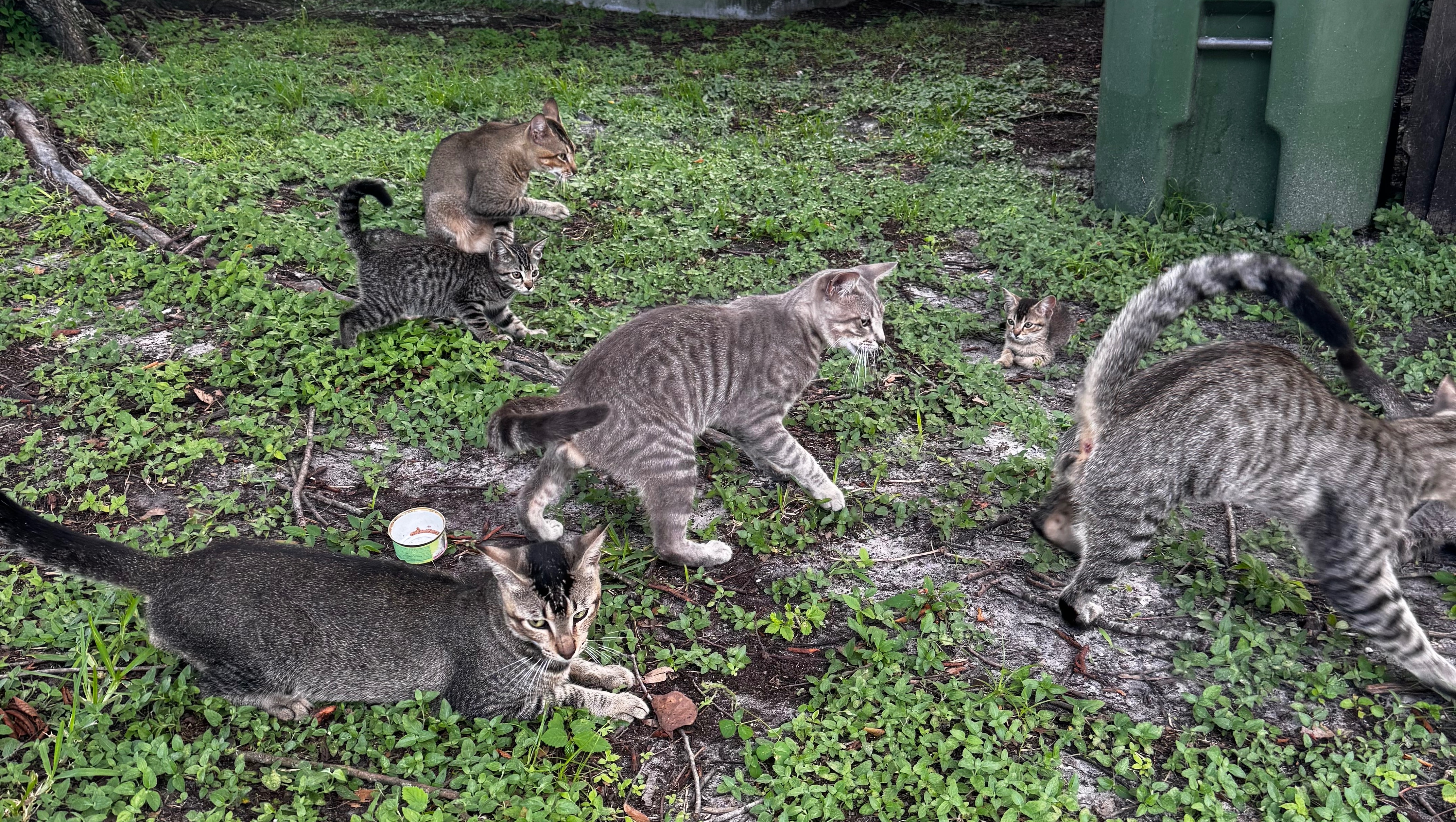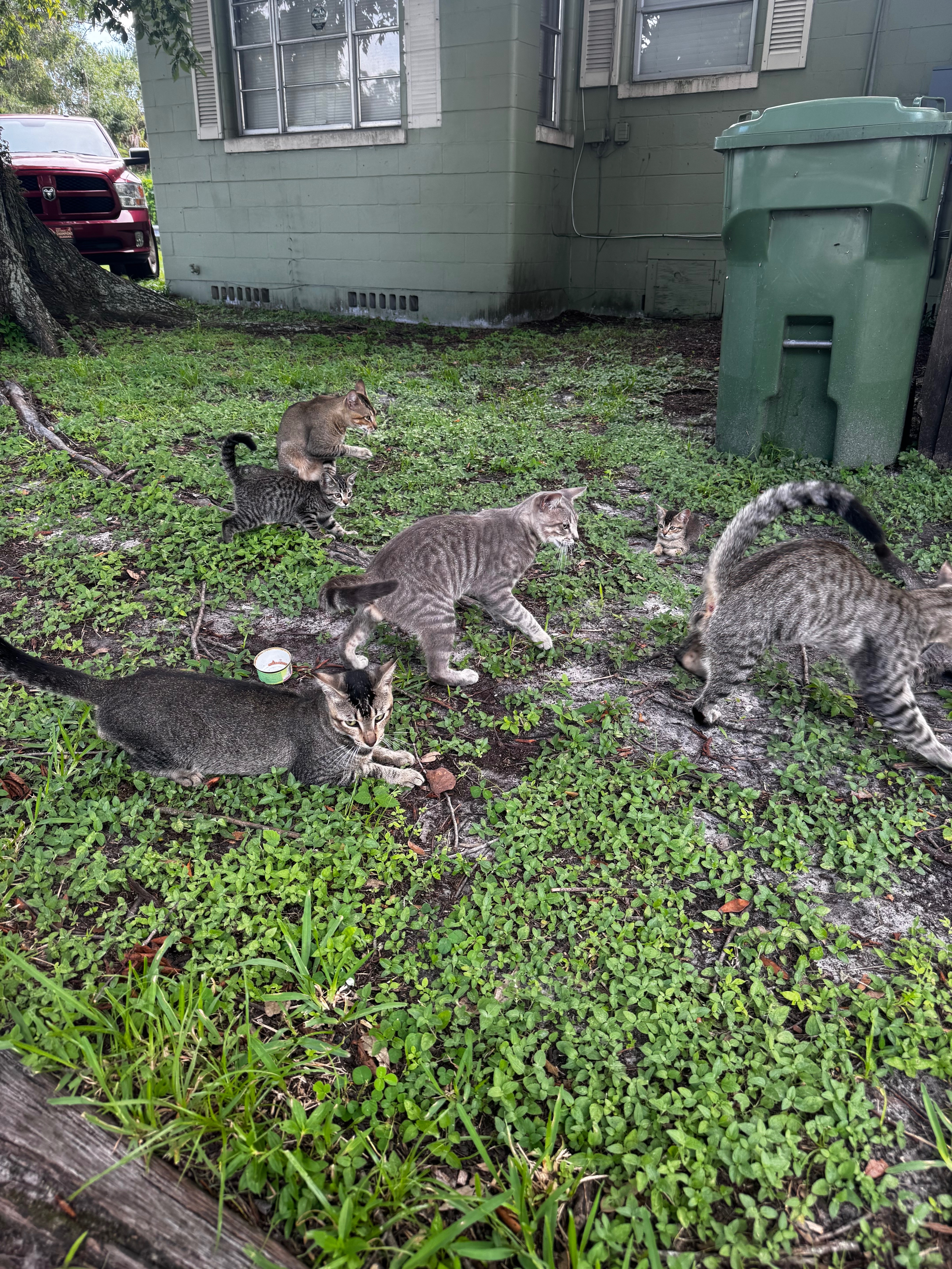 My name is Regina. I’ve lived in Seminole Heights, Tampa for many years off and on. I’ve not seen a cat population explode like this in a while. I just moved into an apartment on the river and noticed this group of cats desperately hungry every time I’d walk my dog. One ended up coming and finding Oliver and me, and I adopted him in, named him Salim. But now his siblings need help! There were 3 small kittens as well that are going to rescue. We were able to get them off the street. However, there are 5-7 adolescents mostly that need TNVR, and a couple are adoptable. I would love to get two of them in foster homes (I may foster one). In the meantime, I have been feeding them every day.