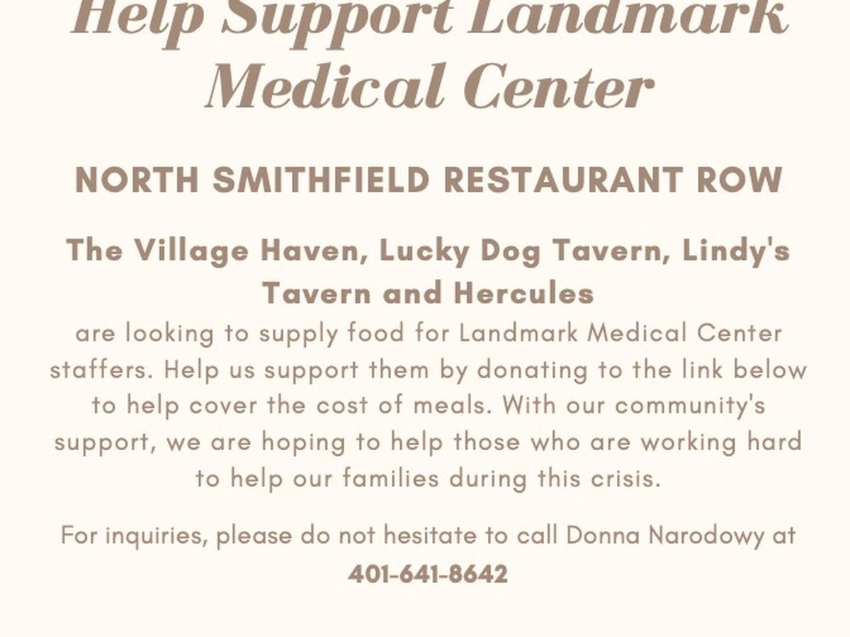 Restaurant Row (Lucky Dog Tavern, The Village Haven, Lindy's Tavern and Hercules Beef Wings and Pizza) in North Smithfield, Rhode Island are teaming up to support Landmark Medical Center through the donation of meals. With your support, we can continue to provide meals made by these restaurants to those working the front lines to help our families. Our hope is that with the support of our community we can continue to feed them for as long as this crisis is going on. Your support will not only help the medical staffers at Landmark, but also local restaurants during this time.