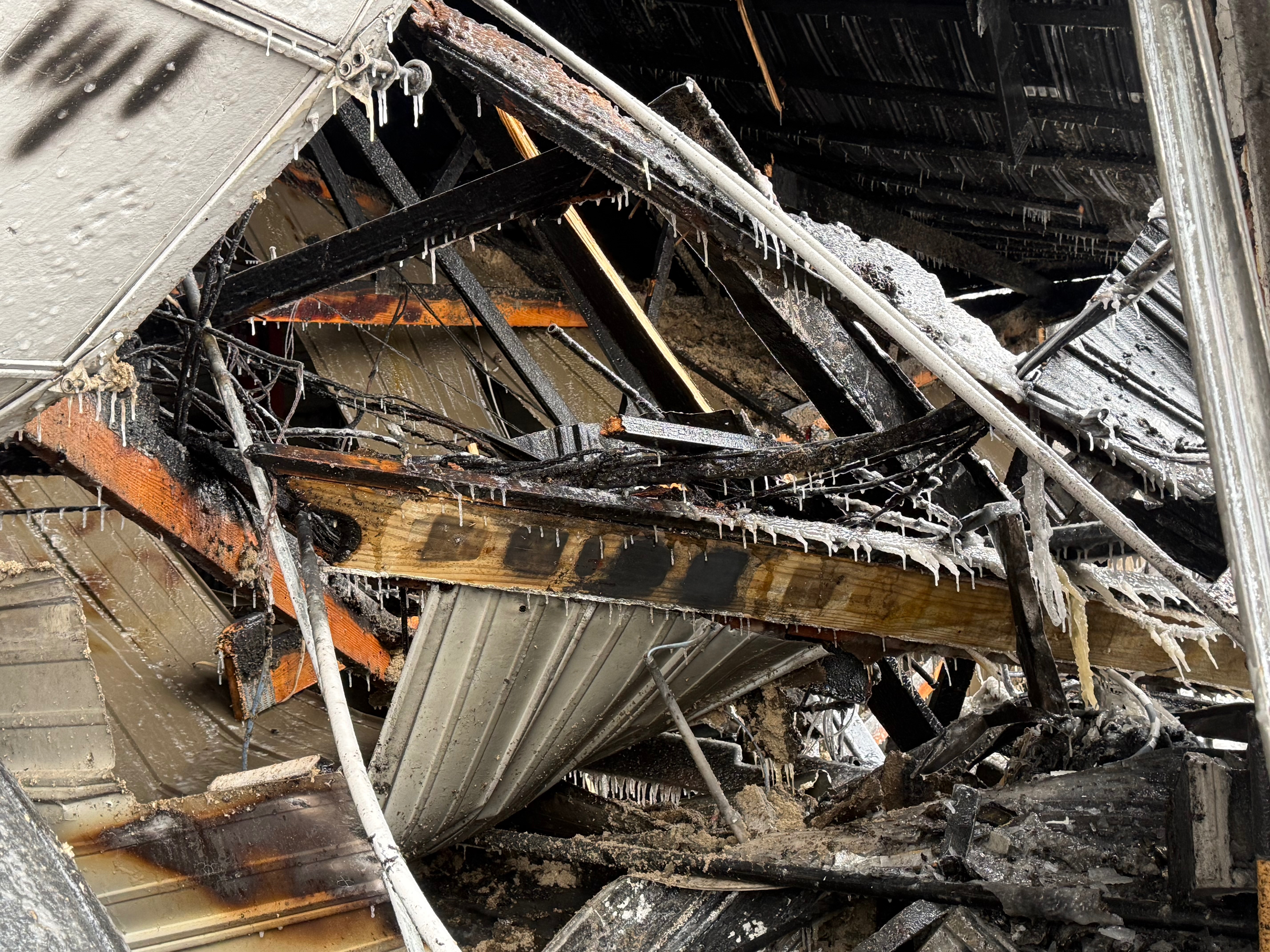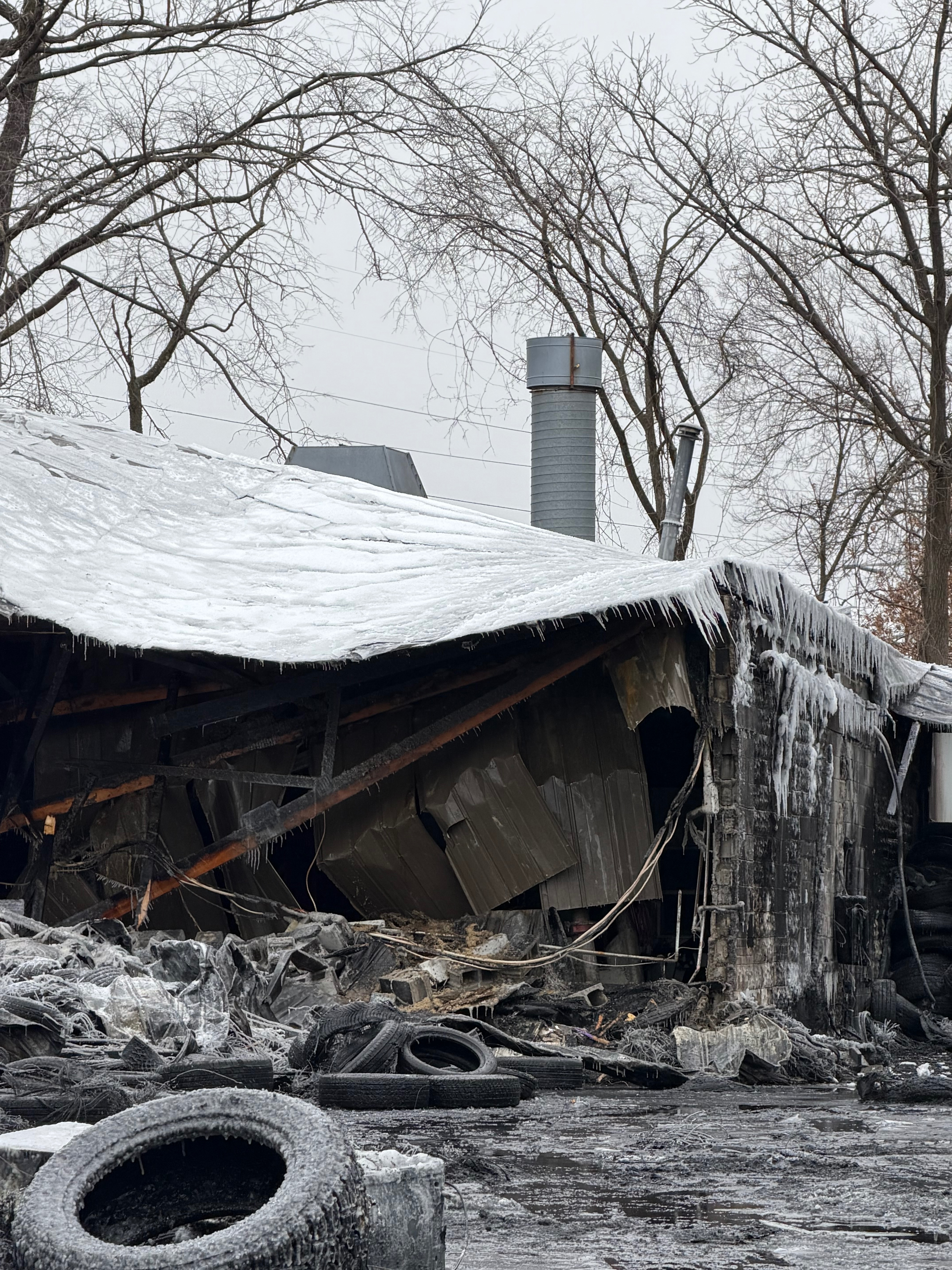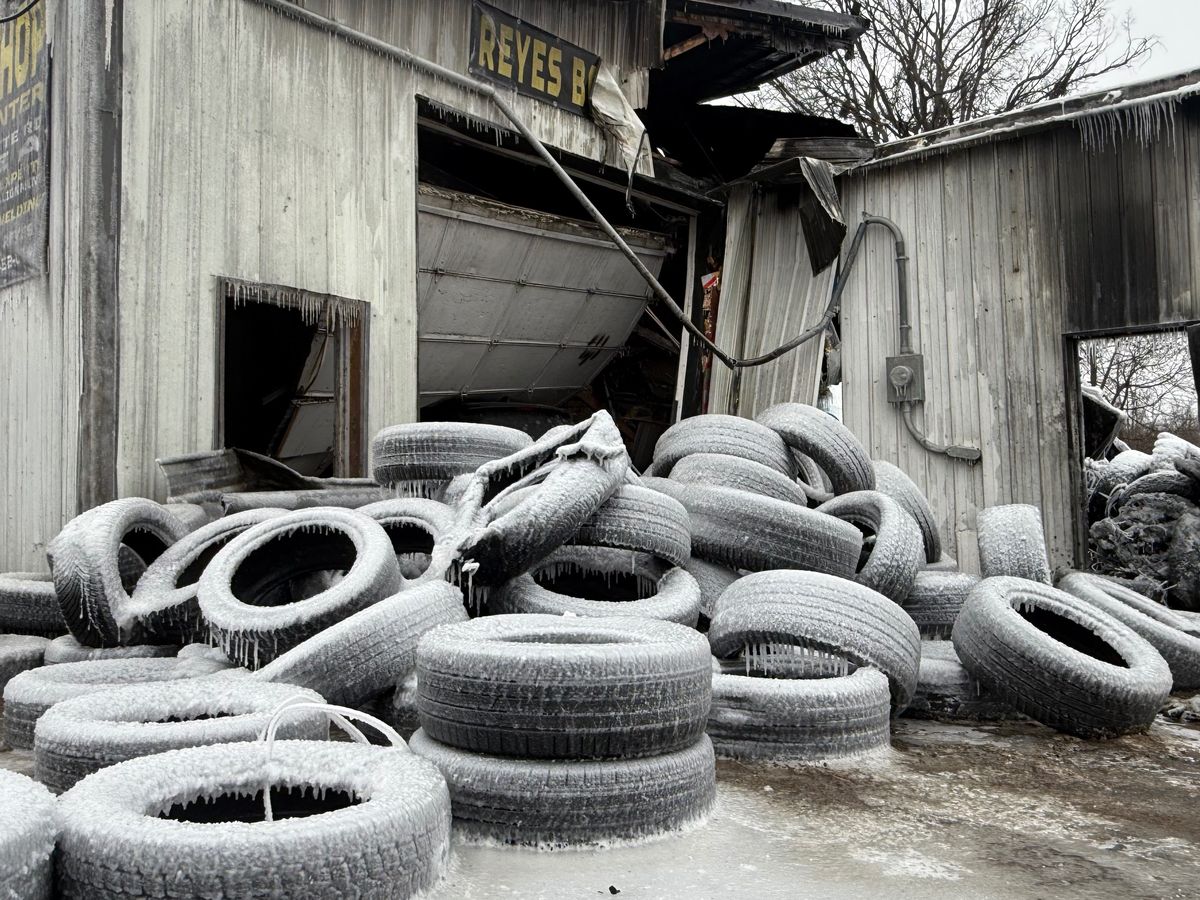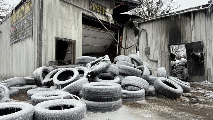 Ayer, viernes 23 de enero alrededor de las 6:30 PM, un incendio destruyó por completo un taller de llantas vecino. Aunque al principio parecía estar controlado, el fuego se extendió hacia Reyes Body Shop hoy en la mañana. Intentaron sacar lo que podian, pero los escombros y las condiciones inseguras causadas por el primer incendio lo hicieron imposible.