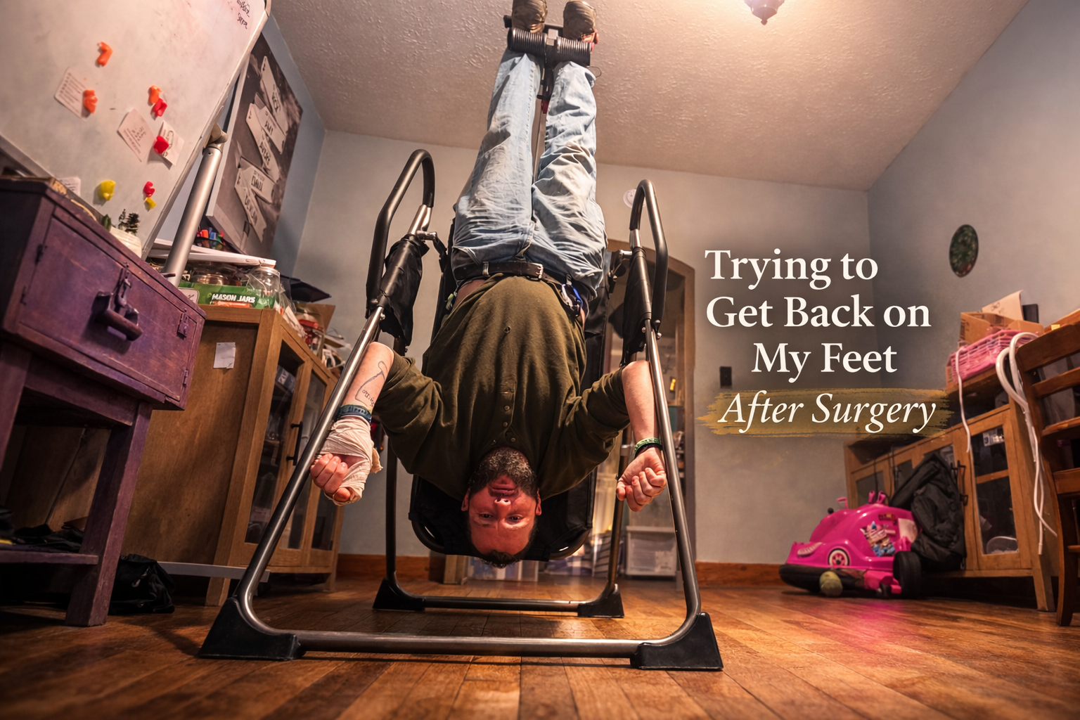 When I can get up, I have to spend time on my inversion table several times a day just to relieve the pressure in my spine. It helps temporarily, but the pain usually returns almost immediately once I’m back on my feet, and sometimes it’s intense enough that even breathing becomes difficult.