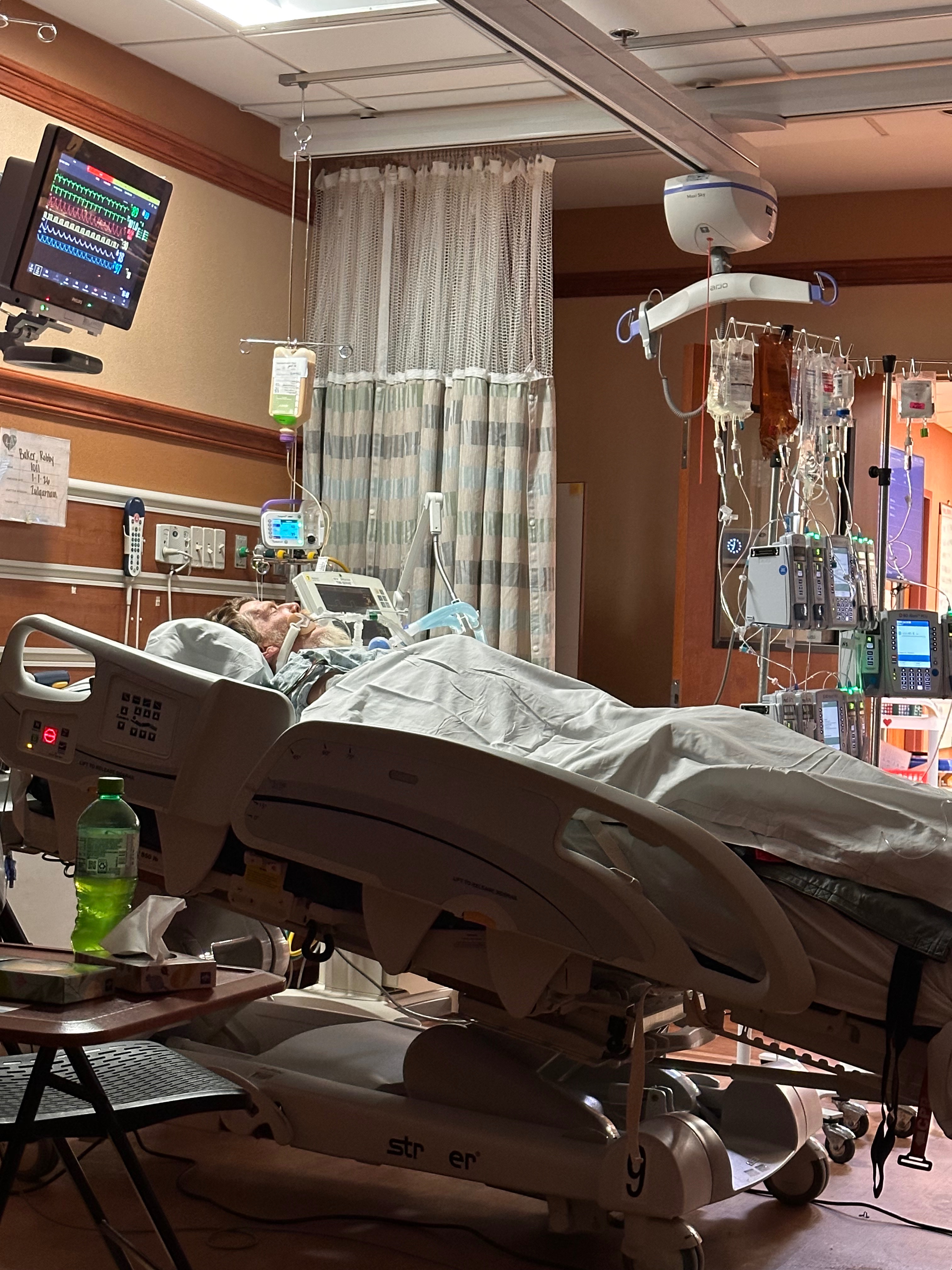 Doctors discovered a 100% blockage in one of his arteries. During surgery, Robby had three stents placed, along with a temporary cardiac support device to assist his heart function and allow it time to heal. After an incredibly long and frightening day, Robby was placed on a ventilator and admitted to the cardiac trauma ICU, where he remains under close monitoring.