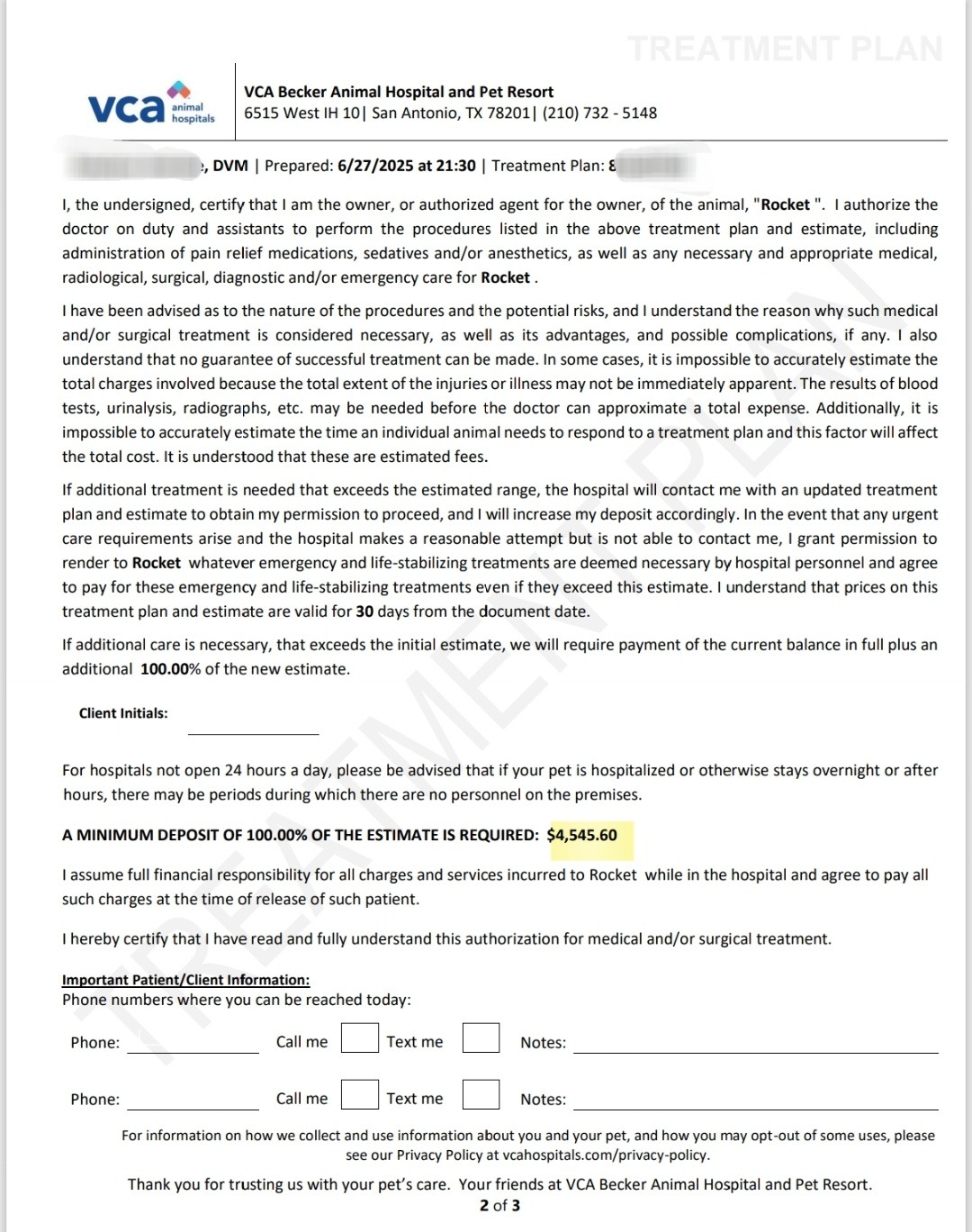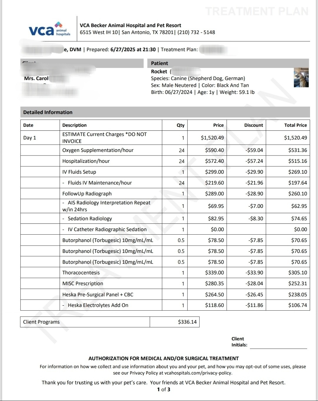 We’ve covered a portion, but treatment is ongoing, and we’ve been told we may need another $1,000–$2,000 depending on how he responds. I should know more later today.