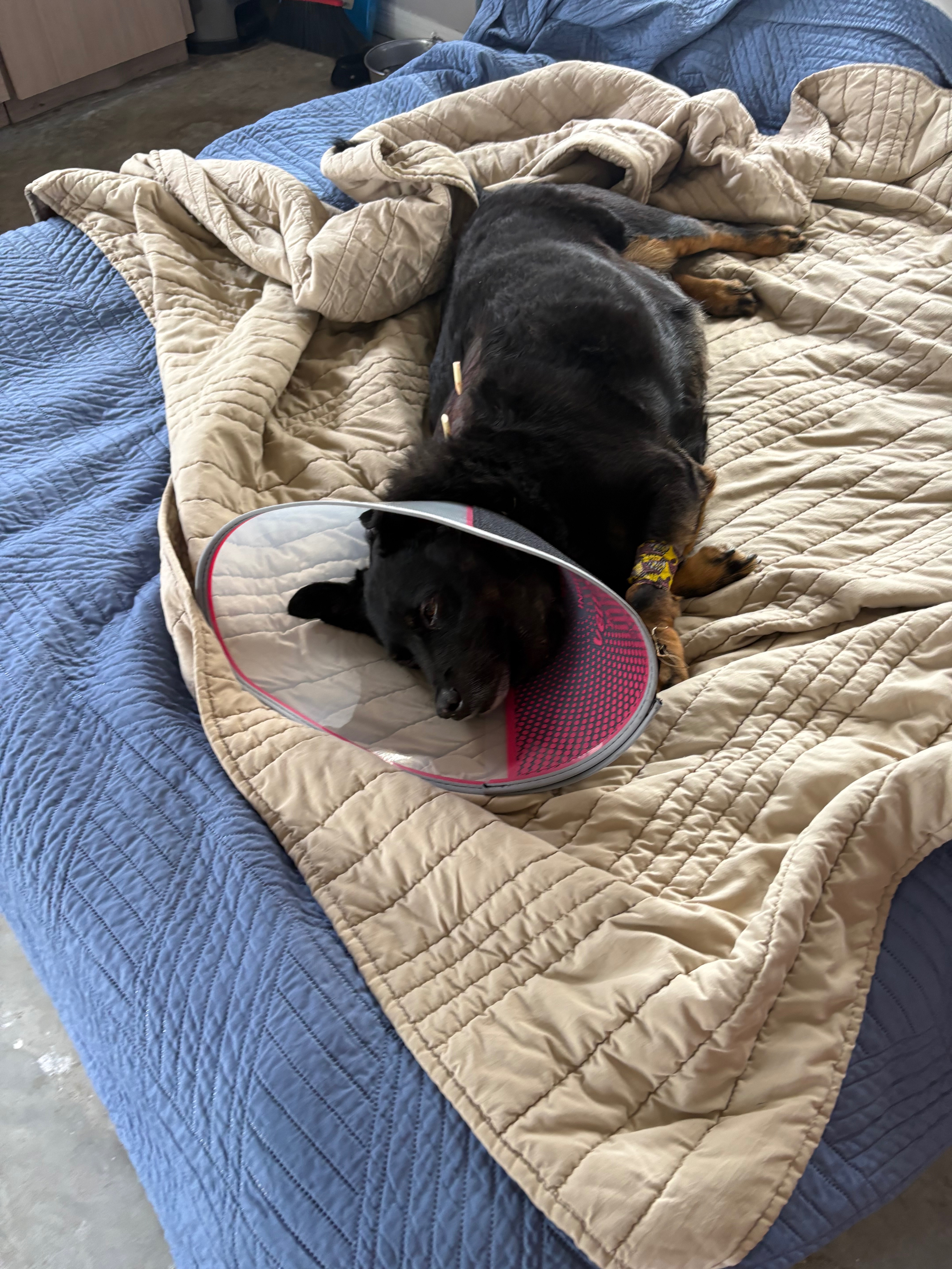 Recently, after moving to Florida to start over, Rocky was attacked by another dog. My mom rushed him to the vet, where he was stitched up, and we were hopeful he would heal. But things have taken a turn. His wounds aren’t healing properly, and now he’s battling a serious infection. The vets are running cultures to figure out what’s going on, and surgery may be the next step.
