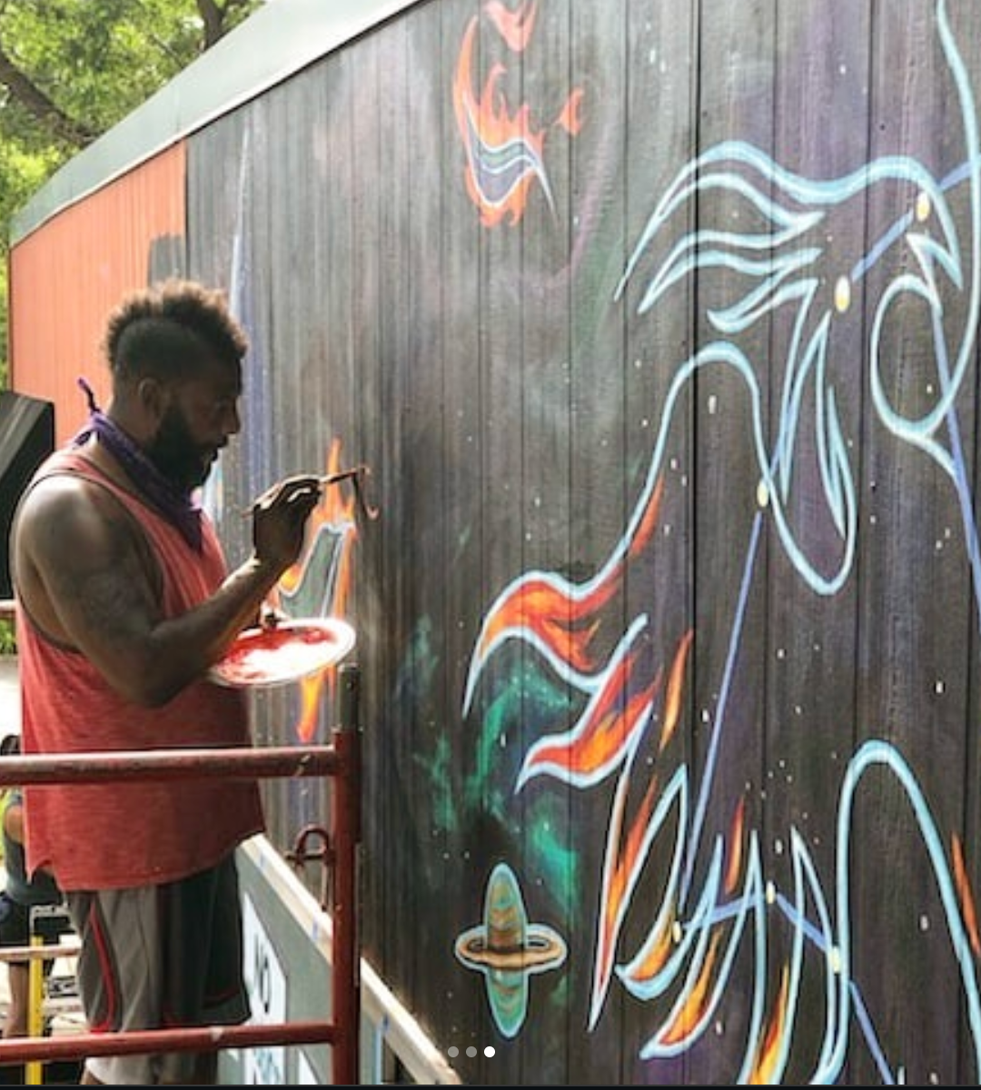 Photos of mural led by Bayou Bay and Creatives After Curfew artists with Roosevelt High school students in 2021.