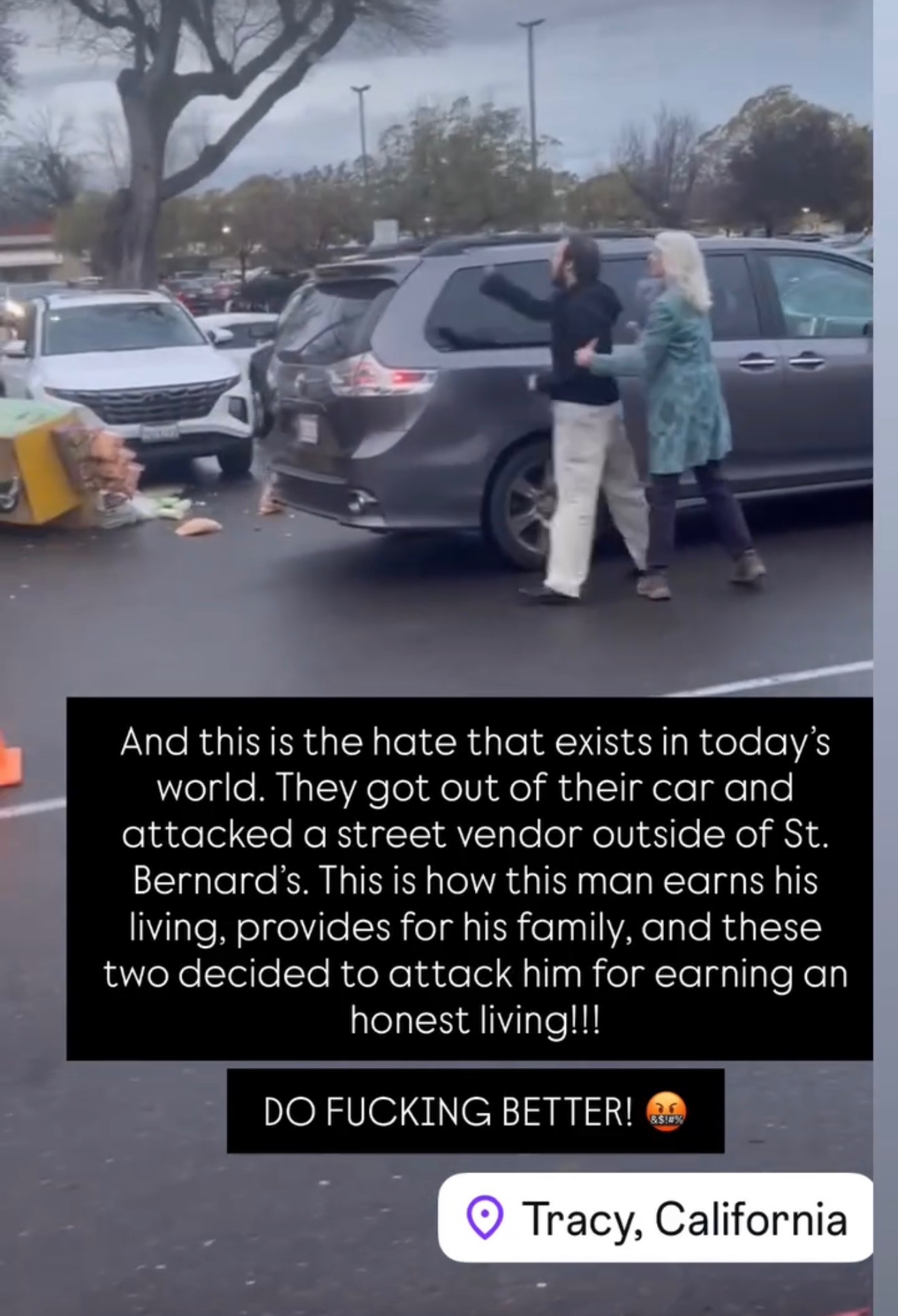 Today, our community witnessed something heartbreaking. Ruben Mendez, a hardworking street vendor, had his cart vandalized by individuals outside St. Bernard Church in Tracy, CA. His cart the very tool he uses to earn a living and support himself and his family — was flipped over and damaged.