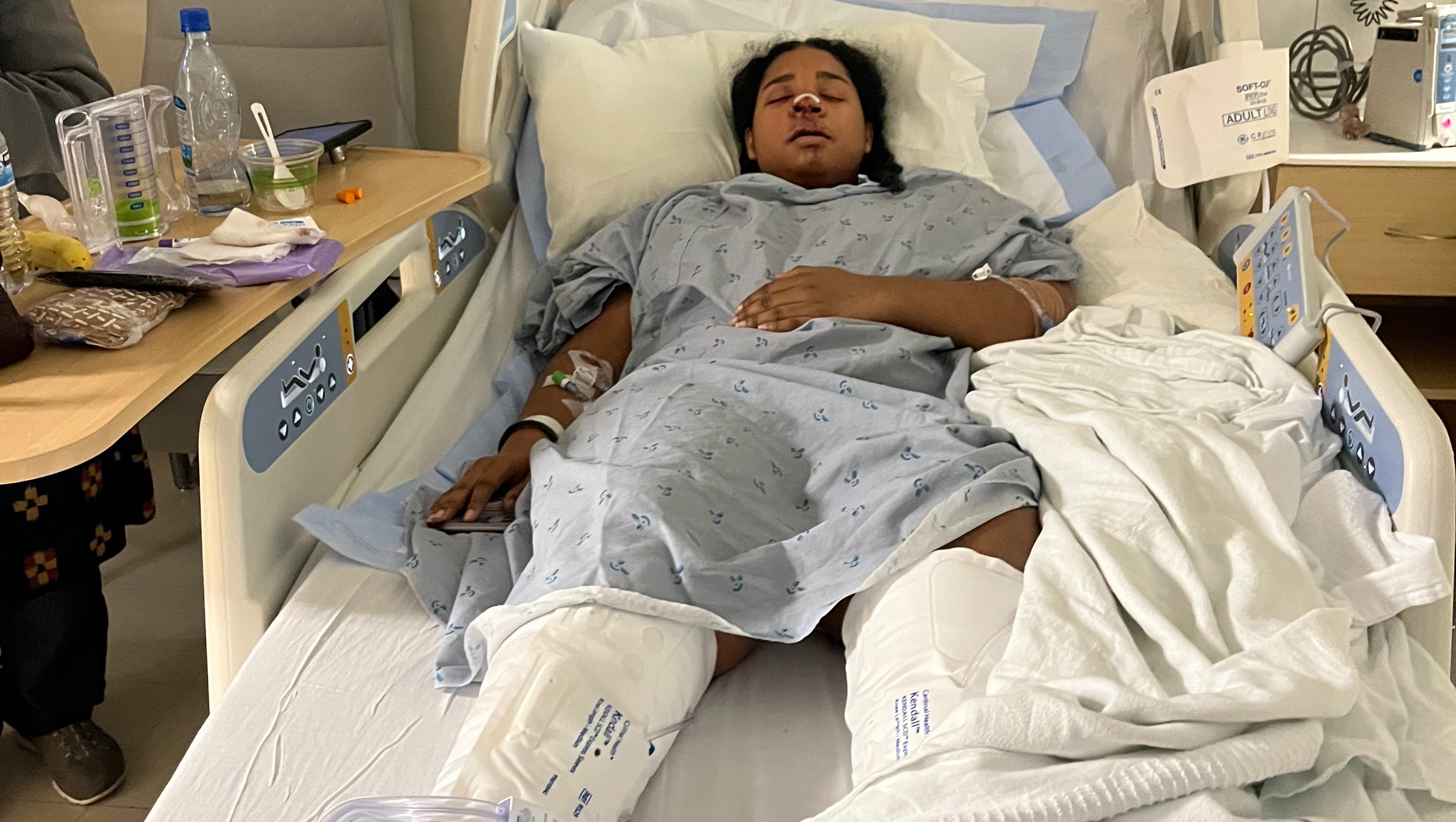 Hi, I'm Saherah. On November 7th, I was walking back home from the park when I was hit by a truck. When I reached the crosswalk at the street right behind my house, I made sure the street was clear, pressed the walking button, and was immediately hit by a speeding truck when I took my first step on the street. I flew up and fell on the driver's hood, then was pushed forward about 100 feet to the ground. I'm suffering from 4 fractured ribs and fractures in my skull. I lost 4 teeth, and doctors have barred my top row of teeth to keep them stable and keep from falling out. I have further x-rays to be done for my knees. I can't stand and take steps without a walker, and my movement is limited due to severe pain and exhaustion. For long distances, I need a wheelchair.