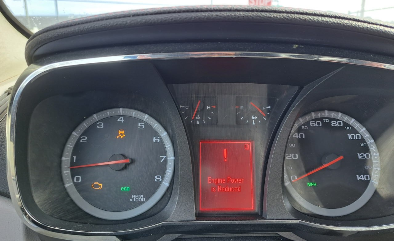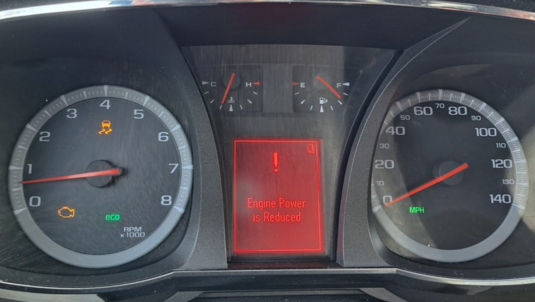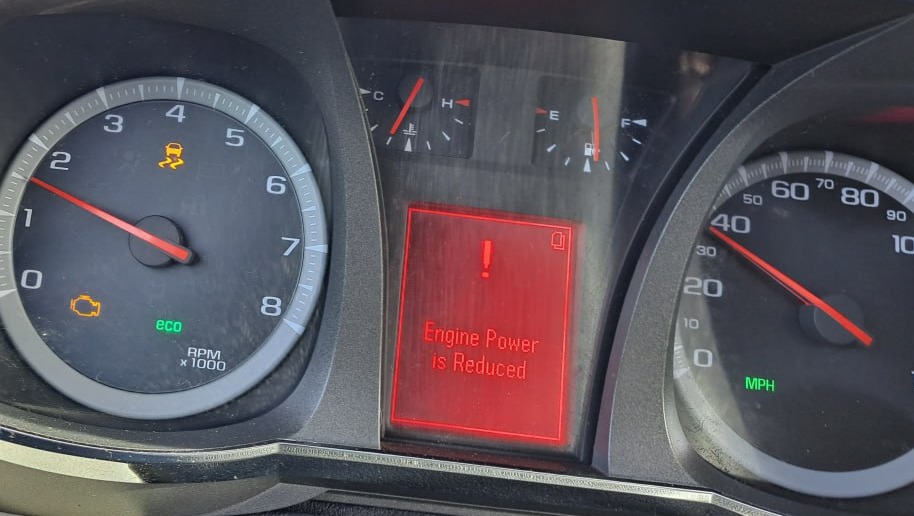 In the first one, I was still trying to drive but the car suddenly started losing power and speed — the “Engine Power is Reduced” warning lit up and the RPMs dropped so low I could barely keep moving.