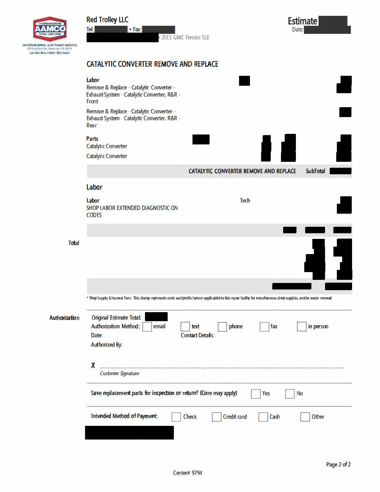 Here are the official AAMCO estimate pages (shown in three images for easy reading):