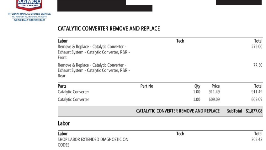 • Replacing the catalytic converter so the car is safe and the warranty can finally kick in