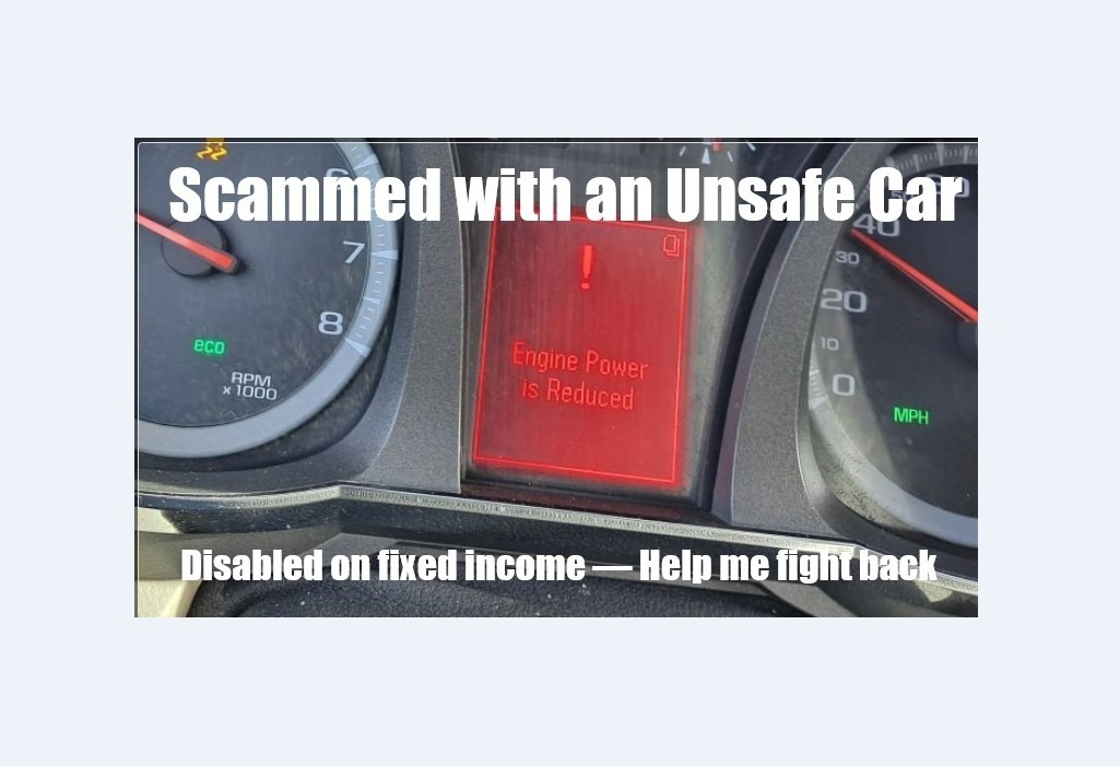 I’m a disabled woman on a limited income who was sold an unsafe car. The dealership claimed to replace key parts, but AAMCO confirmed they didn’t. I left the car with them for an extended period and was still misled. I need help to replace the catalytic converter, complete repairs, and seek legal justice. Any help or shares mean the world—thank you!