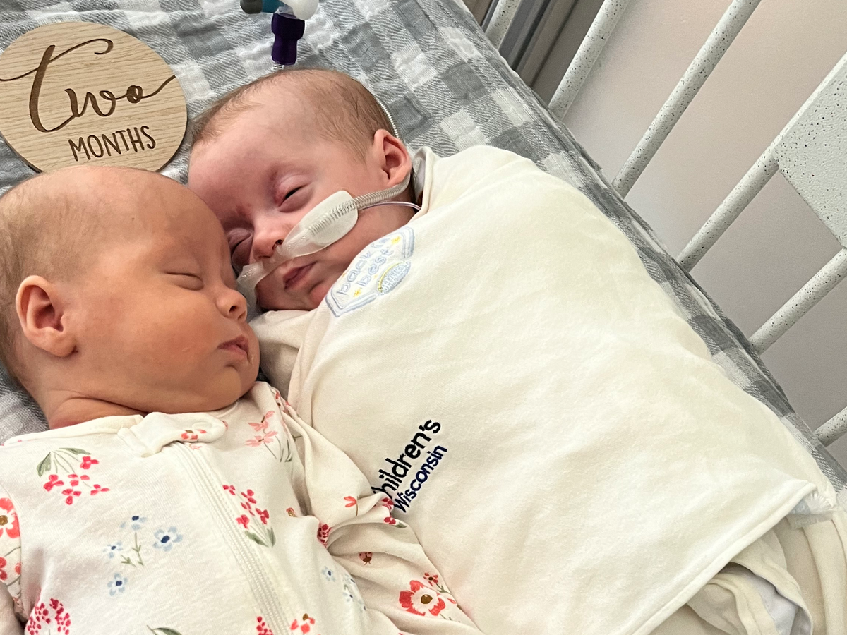 My daughter Samantha and her husband Brian had twin baby girls on May 21, 2025. Being 7 weeks premature, they were in the NICU at Thedacare in Neenah. Freya has come home with her mom and dad.