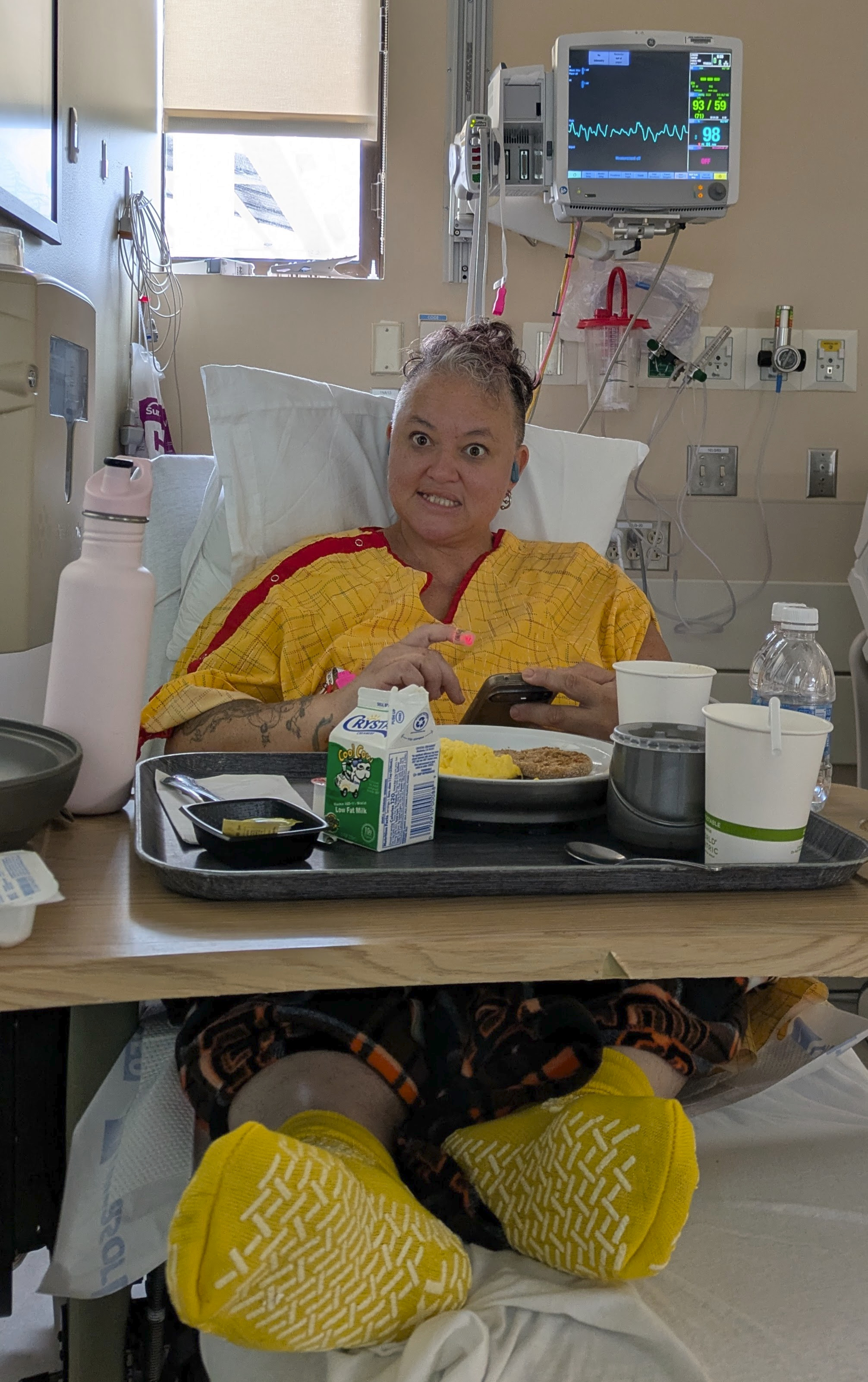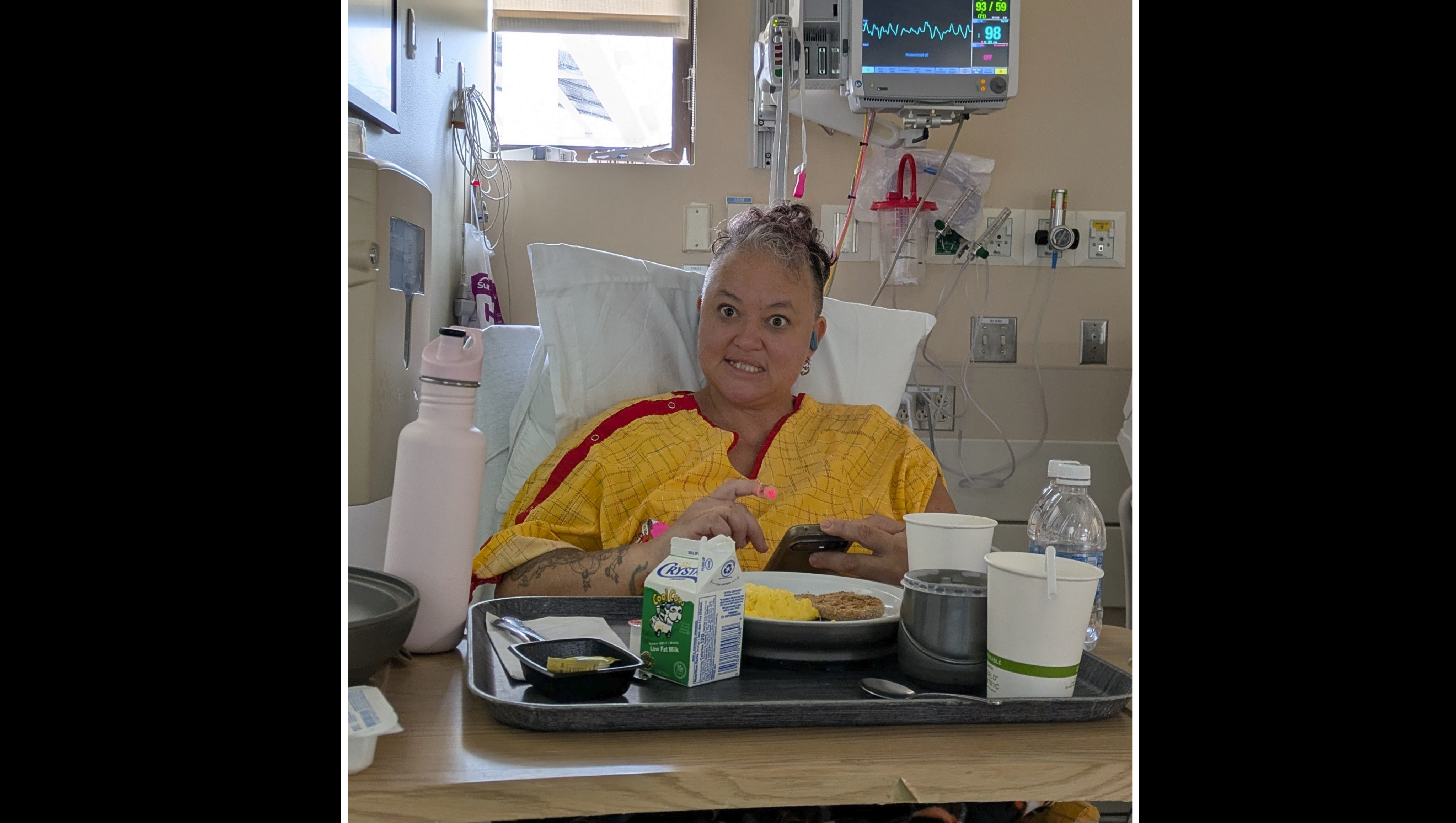 On Friday, September 12, 2025 at 11am, Sarah was in an exercise class when she felt suddenly ill. After sitting for a few minutes to catch her breath, she realized she was likely having a heart attack. I rushed to find her sitting in her car looking gray and all kinds of bad. 911 brought the ambulance team that confirmed she was in the middle of having a heart attack. After rushing to the nearest hospital (Good Samaritan, San Jose), she was assessed and brought immediately into the Cath Lab for treatment. While working to insert two stents on the right side of her heart, she coded three times and was brought back to life with the miracle paddles three times.