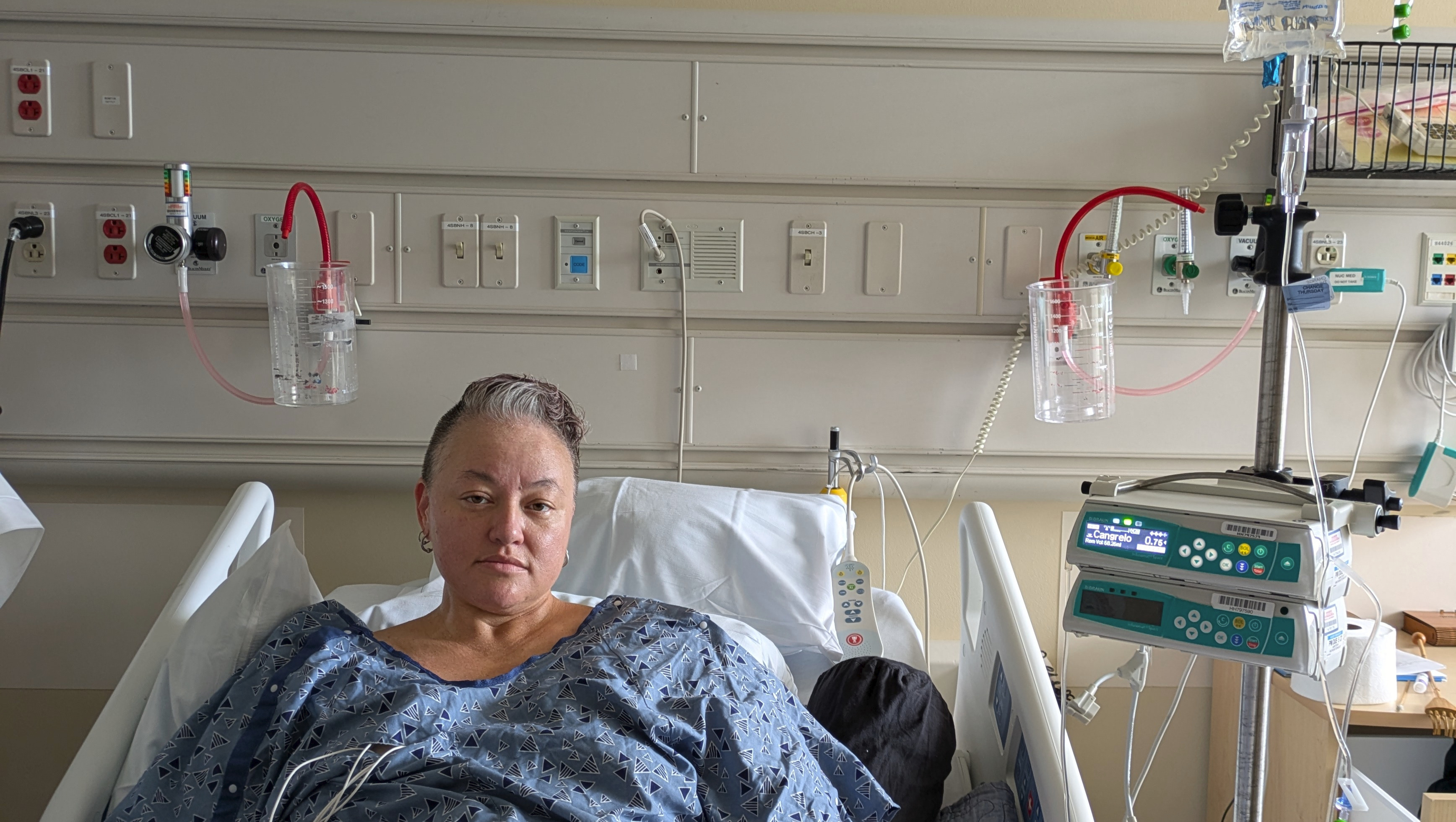 During the ordeal, her surgical team noted that while their treatment of the RIGHT heart was successful, the vessels on her LEFT side heart have blockages and are extremely weak, weakness likely caused by the radiation she endured 23 years ago when being treated for Hodgekin’s Lymphoma. These vessels are at such high risk of failure that the doctors will not let her leave the hospital without getting them all fixed up.