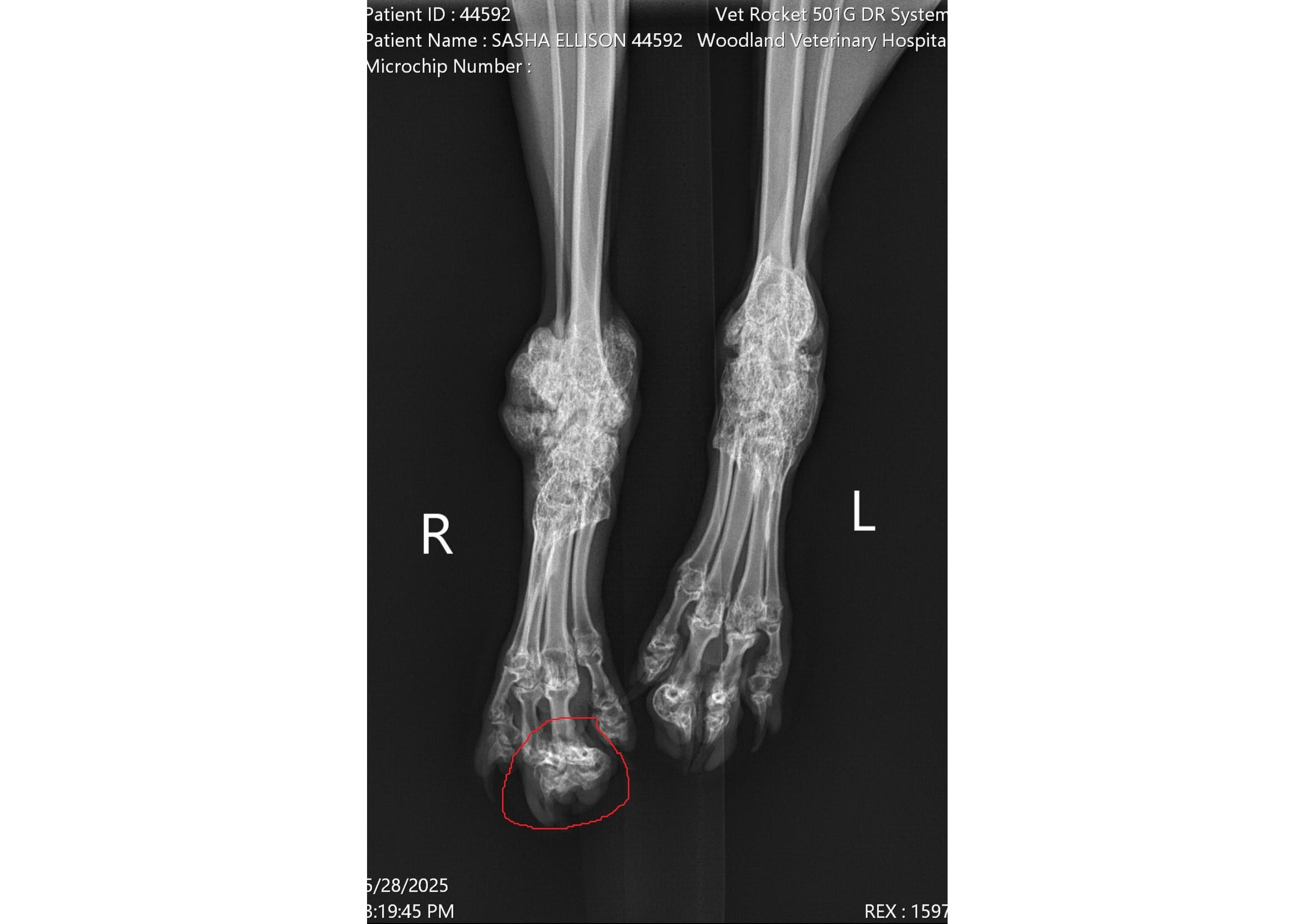 Unfortunately, Sasha was born with a genetic condition known as Scottish Fold Osteochondrodysplasia, or Scottish Fold disease. While this mutation gives Scottish Folds their distinctive and adorable folded ears, it also leads to painful and debilitating bone disease. Over time, Sasha has developed significant bone growth around the joints in her hind legs, including her ankles and toes. This has caused her considerable discomfort and has now progressed to the point where one of her toes is so swollen with bone that she can no longer walk on it. Although this condition cannot be cured, surgery could greatly improve her quality of life: Sasha now requires a single digit amputation to relieve her pain and help her regain mobility. Due to her rare and complicated condition, this surgery requires specialist care and is incredibly costly. The estimate for this procedure and post-operative care lies between $5,000 to $6,000.