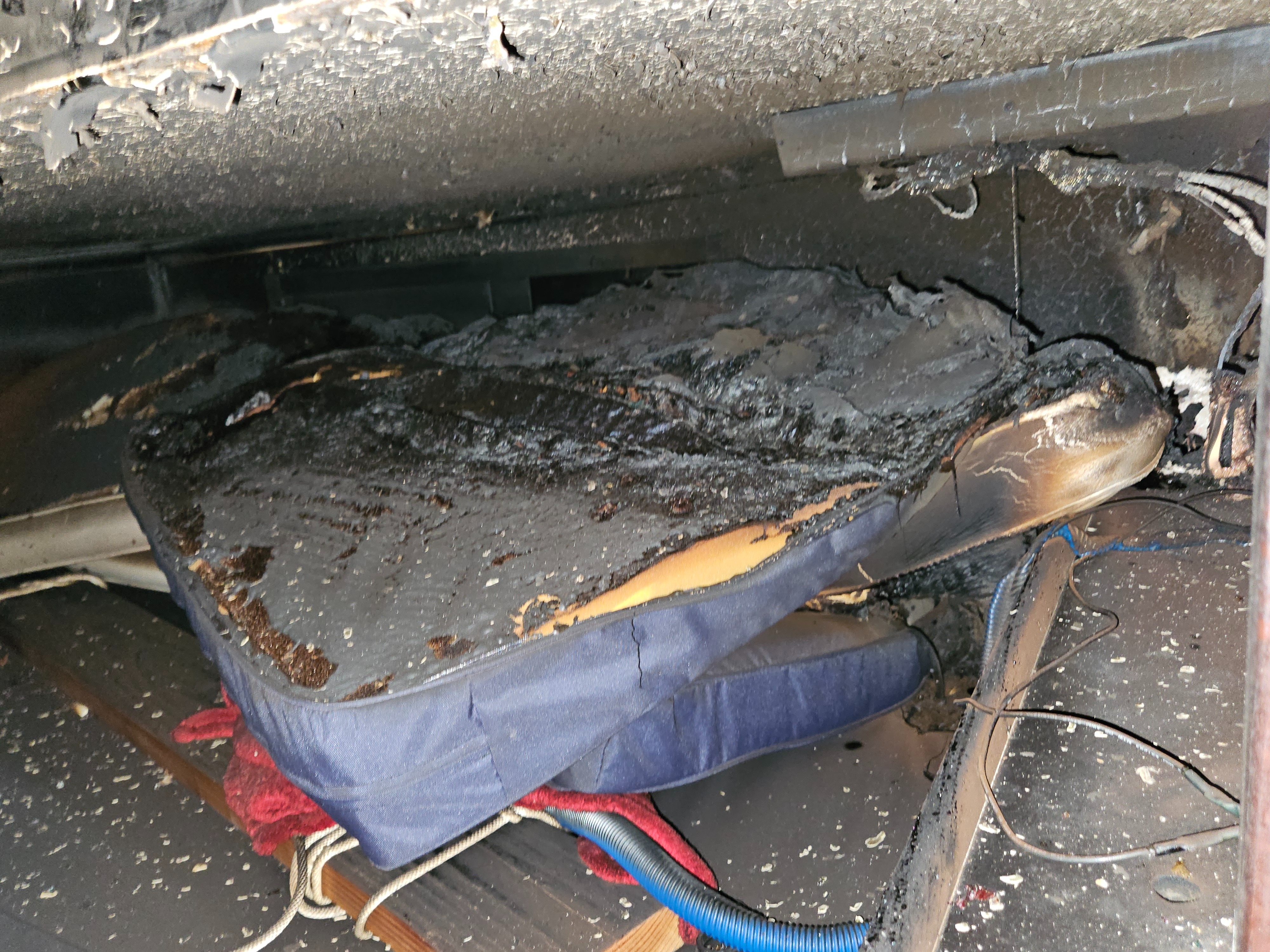Around 8:45 pm on May 30th, 2025, during an unusually hot evening, an electrical fire broke out inside the cabin of our 1983 Catalina 36. The fire destroyed the kitchen (galley) area, melting drain pipes, and water started coming in. Then it spread to the aft cabin, melting wiring, engine hoses, and the fiberglass. Intense heat melted our newly donated HAM radio and most of our electronics. Our best guess is that the incoming water doused a lot of the flames and it burned itself out.