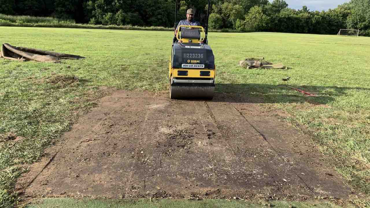 3. We also used the roller to level the bowling run-up.