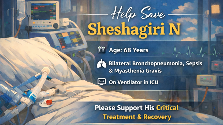 I am creating this GoFundMe on behalf of my brother Suhas Murali - whose father-in-law Mr. Sheshagiri N is fighting a rare neuromuscular condition. He has been in the ICU battling severe pneumonia and Myasthenia Gravis (MG) — an extremely rare autoimmune neuromuscular disorder that affects muscle strength, including the muscles required for breathing.