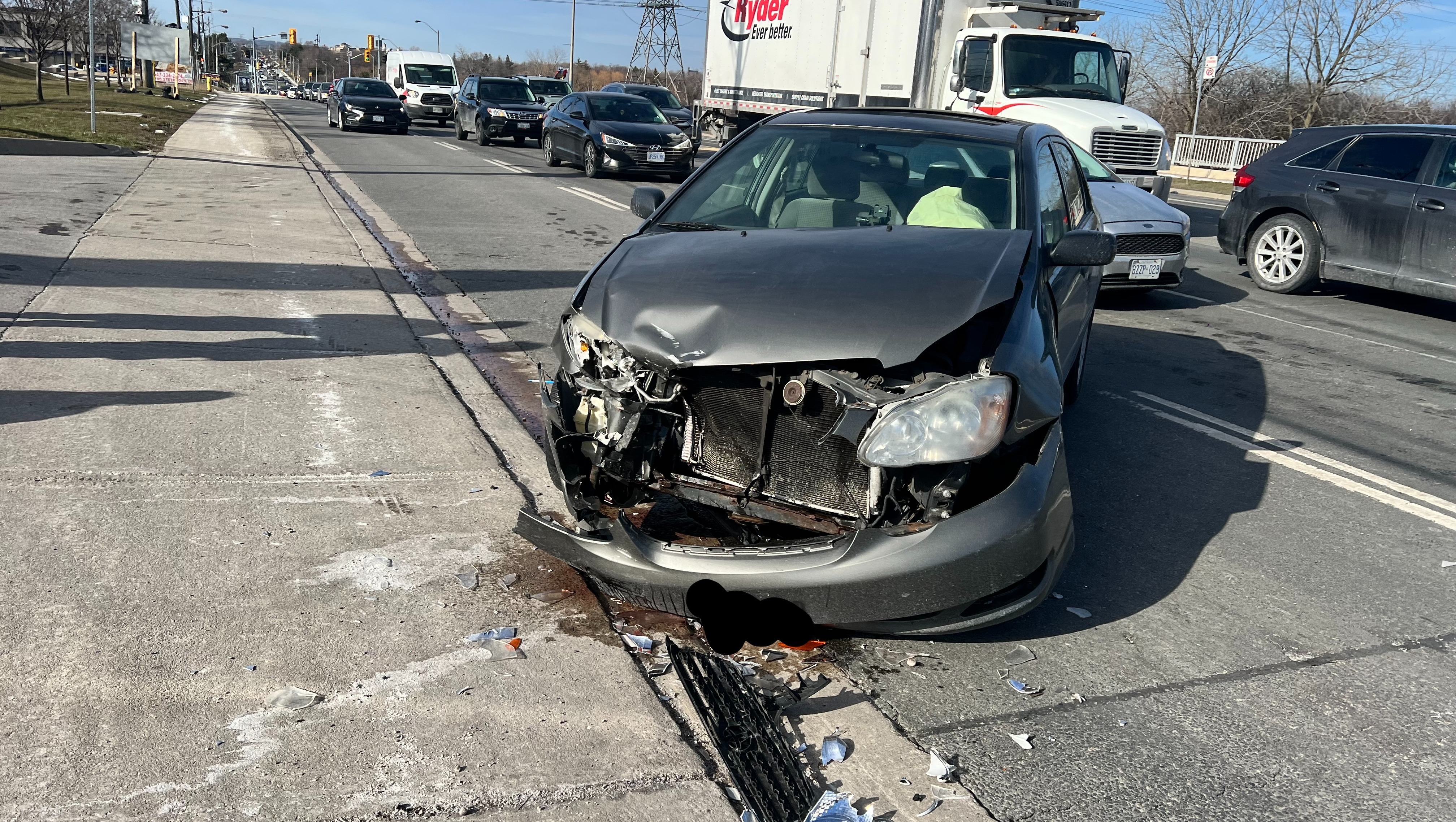 On Monday, March 25, 2024, at around 3:15-3:20 PM, I left work for a 2-minute drive to our storage unit (Finch Ave West & Dufferin Street) to pick up some stuff for our community programming. On this beautiful, sunny day, I was making a left turn into the plaza entrance as the cars in the main lanes made an opening for me. As soon as my vehicle slightly peaked into the carpool lane between the road and the plaza, a speeding single driver came out of nowhere and crashed into me. It happened so fast that my car immediately swerved into the lane. The impact was so severe that it completely totalled the front of my car from the left to the front area. My airbag went off, my car was smoking, and I sustained injuries as I had to escape from the passenger seat.