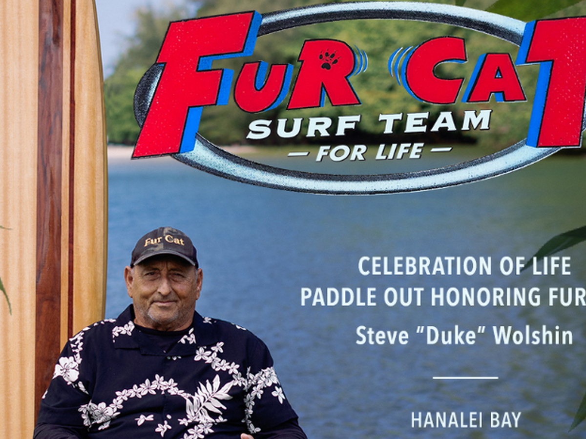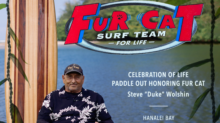 Fur Cat, aka Steve, was a surfing legend who lived in HI most of his life. He is survived by his sisters, nephews, nieces, daughter, wife, and his beloved community.
