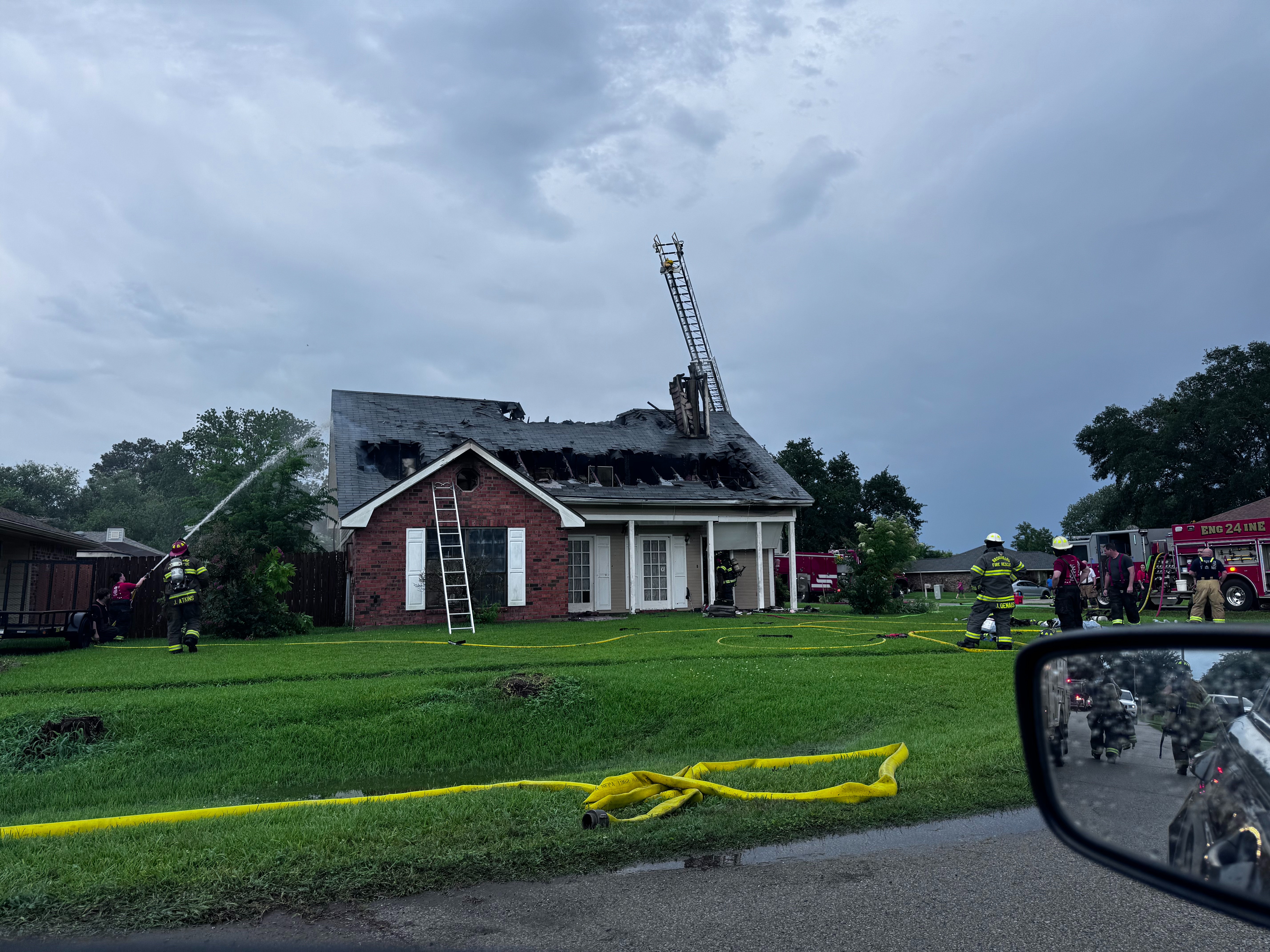 On the afternoon of June 14, 2025, lightning struck the chimney of my childhood home, causing a fire that rapidly spread across the roof. Multiple fire departments responded—from Cade, Youngsville, Carencro, Lafayette, and Broussard. We counted around 10 firetrucks surrounding the house. We are forever grateful.