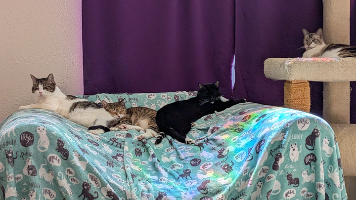 Rocket Cat Rescue is a 501c3 nonprofit home and adoption center for special needs domestic cats located in the Northern California Sacramento area. The rescue is run by its founder and a small, dedicated group of volunteers. The cats' difficulties range from blindness to partial paralysis to mystery immuno dysfunctions to wobbly cat syndrome (cerebellar hypoplasia), just to name a few issues the residents have.