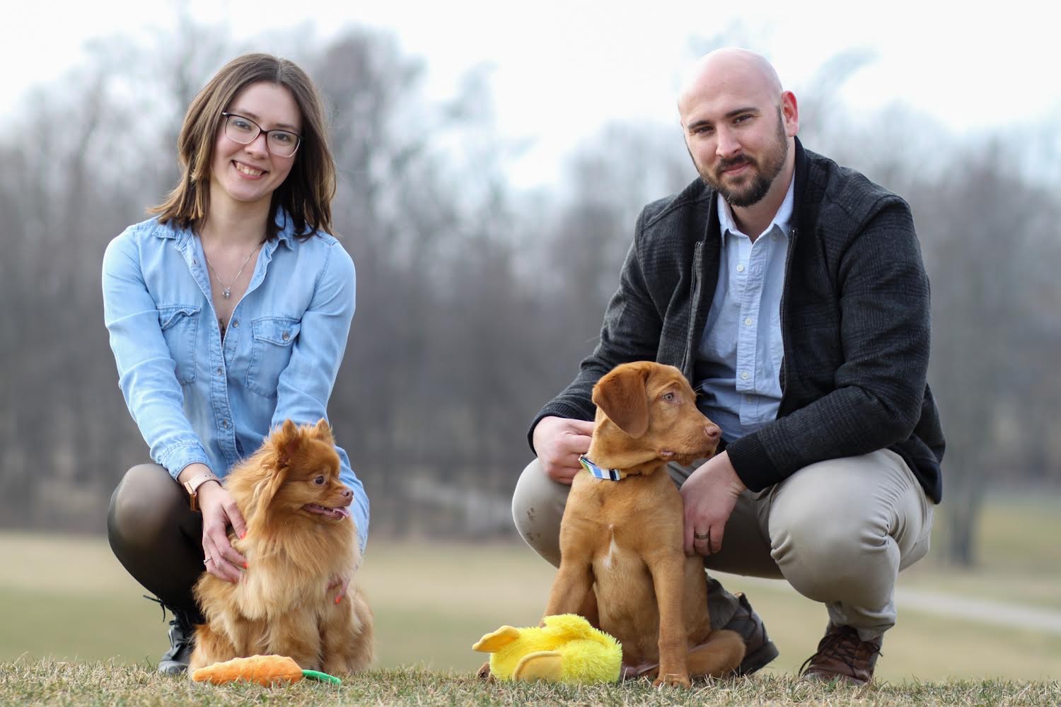 Spy was very skittish from the first day he got home, and was afraid of the outdoors, new people, and dogs. We’ve worked with him in the past year and a half, and he has come so far! Spy has now been to three states, camping up north, and swimming. He’s been able to grow up with two of his littermates whenever we visit Grandma and Grandpa, and he is very attached to his Pomeranian sister at home.