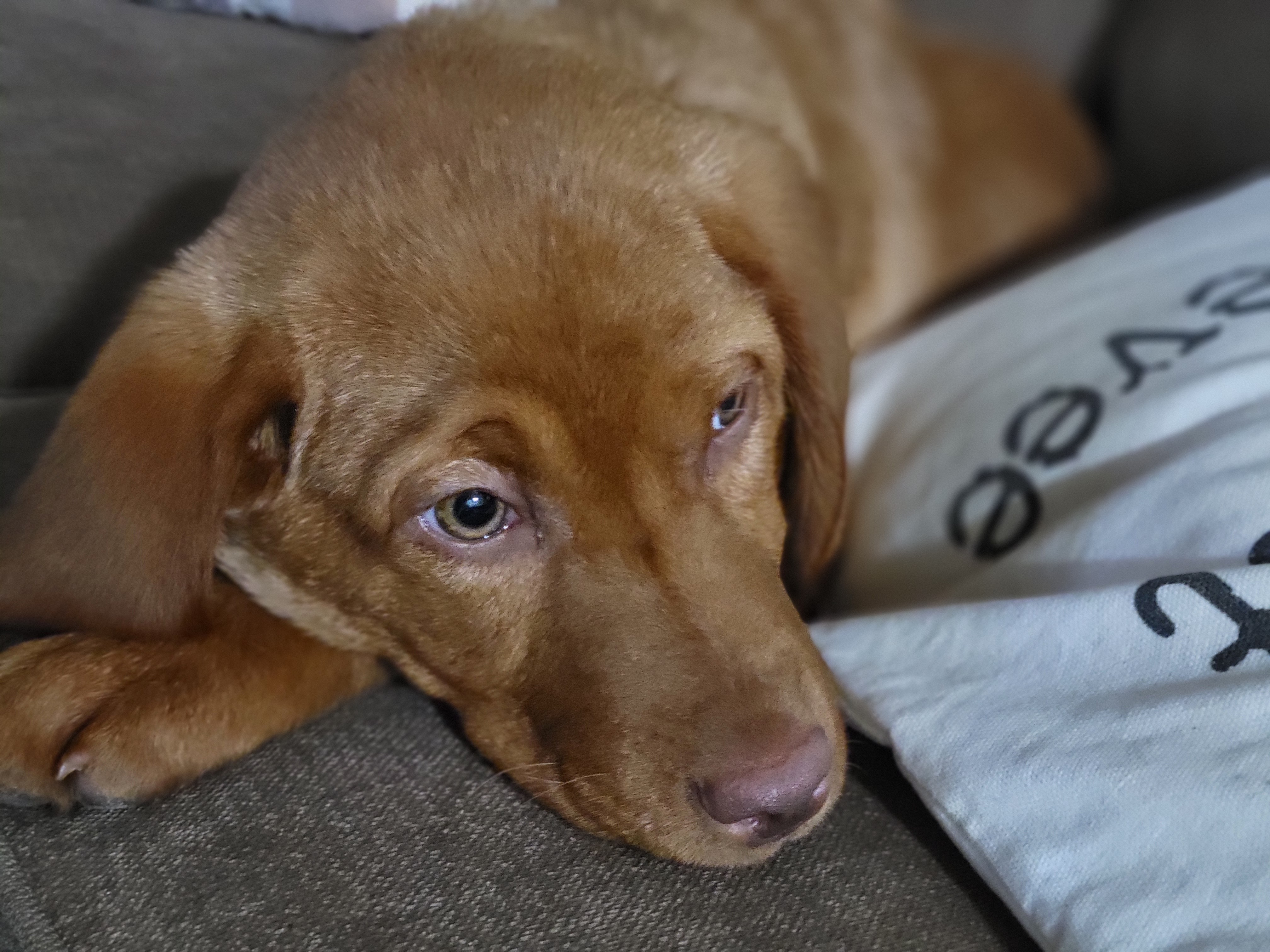 Hello! This is Spyro’s Mom, Lauren. Spy is a 1-year-old Red Labrador. He came into our lives unexpectedly, when my in-laws adopted his two brothers, and three months later my MIL noticed that he still hadn’t found a home. Spy came home at 5 months old weighing 10 lbs., and was diagnosed with Giardia and a tapeworm. We put him on a good food and took him to the vet and got him back to health.