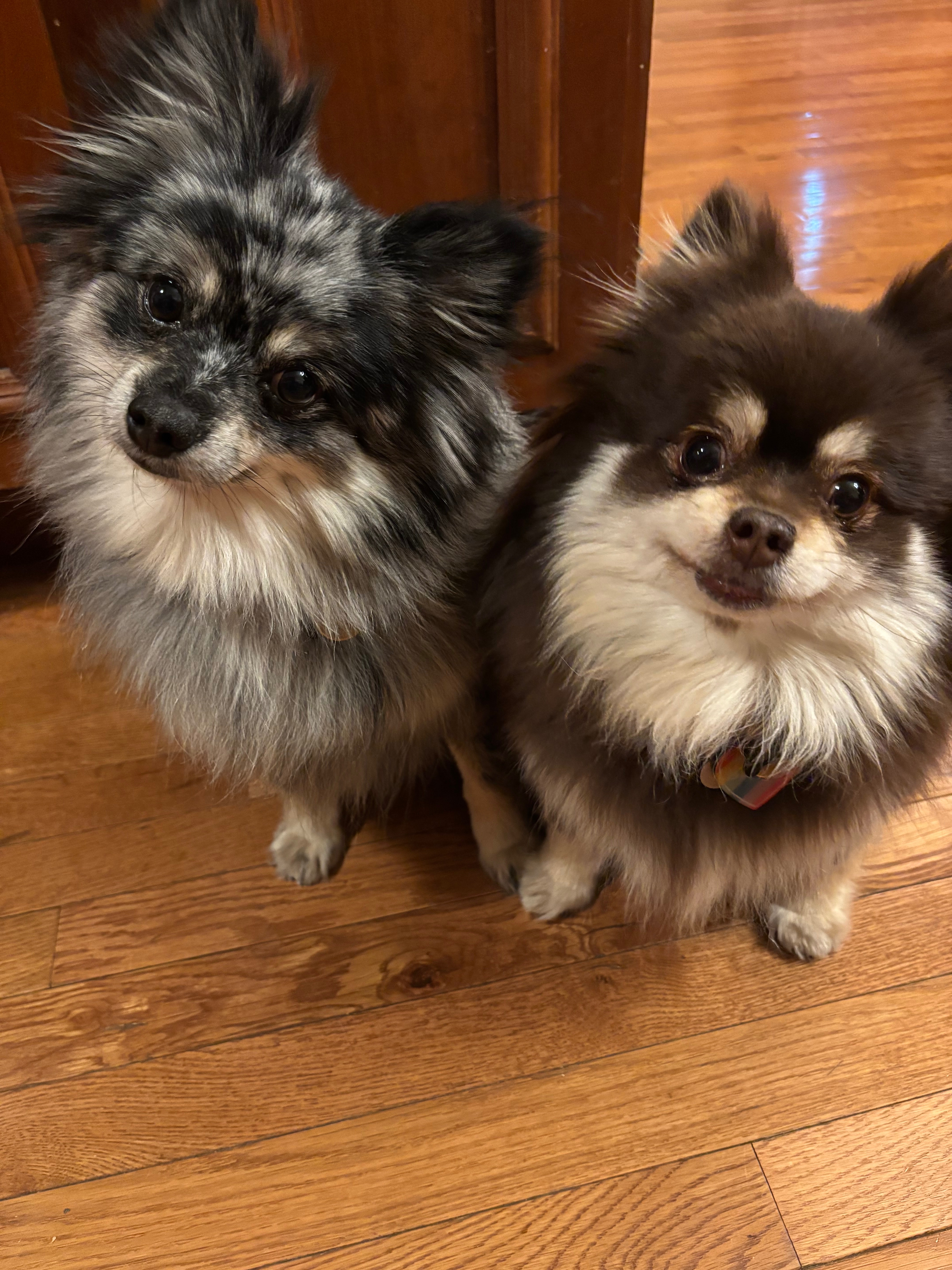 Stormy ( Gray Pomeranian) my other dog, was severely injured. She was bitten so badly that she lost full use of her back leg. After multiple vet visits, we were told she needs hip surgery to walk normally again. Right now, she hops on three legs, guards the injured one, and can’t play or move like she used to. Despite everything, she’s been so strong and sweet — always trying to stay happy and follow me everywhere, even in pain.