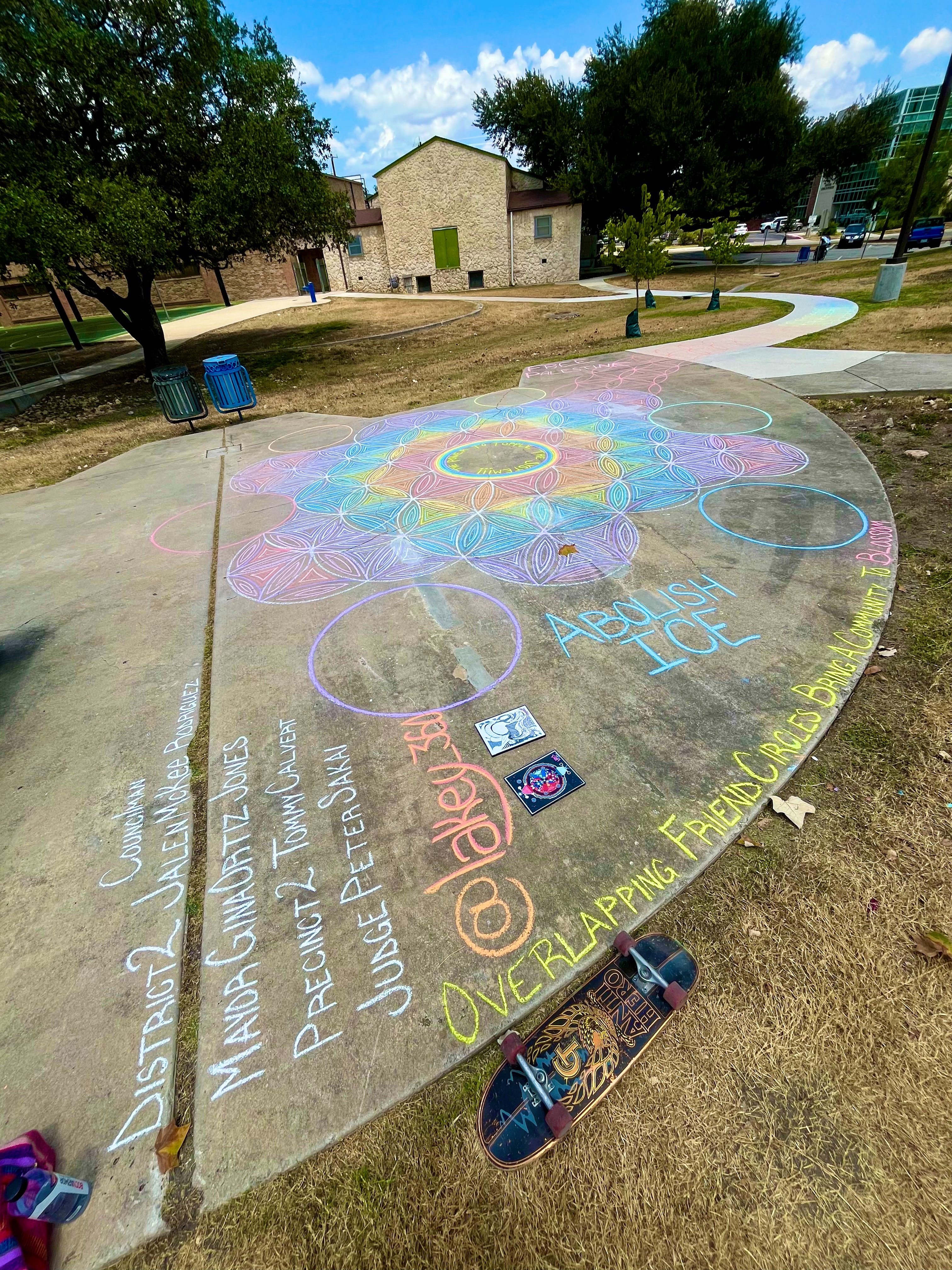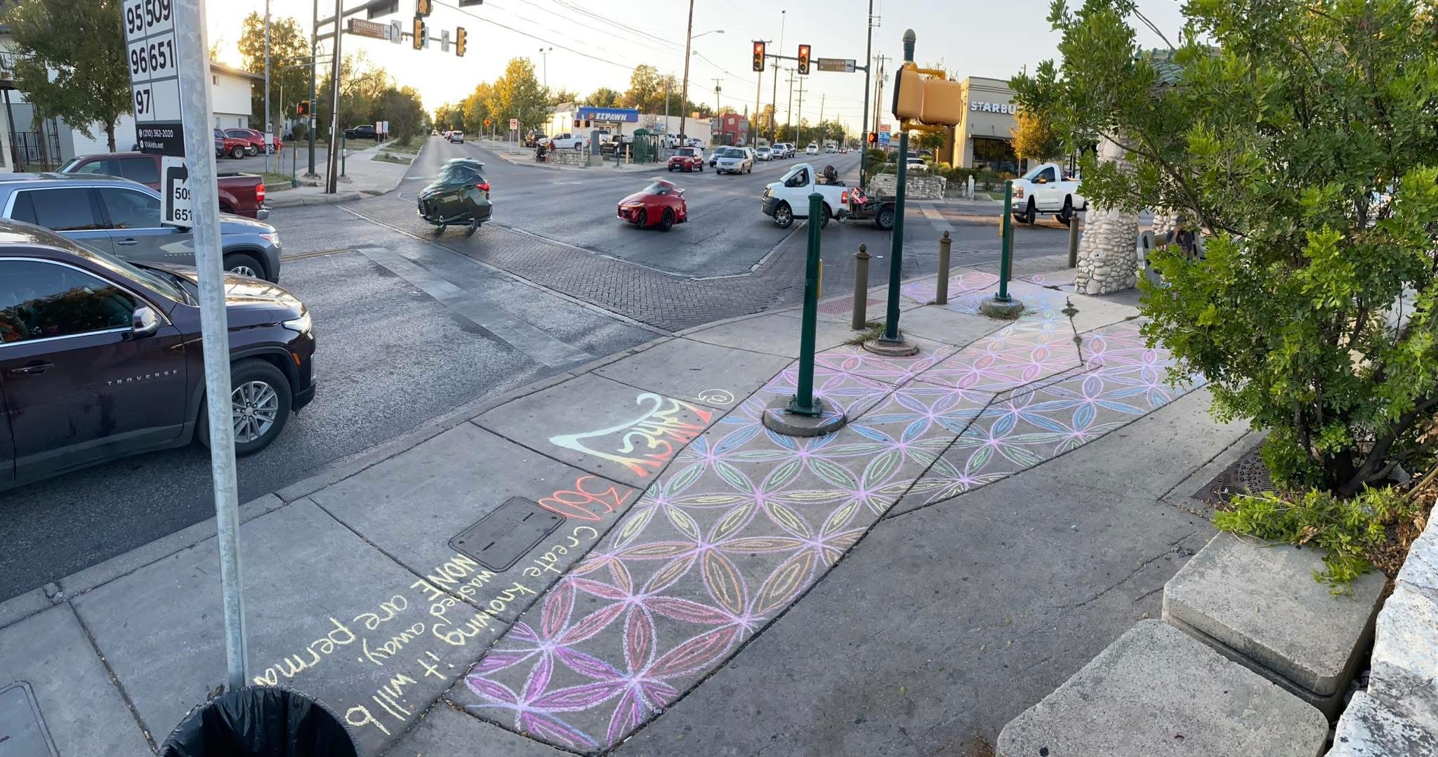 I come from trailer parks and a broken family, to years in foster care and unofficial boys homes, to traveling street artist and poet, to chalk artist and activist. Initially San Antonio Law Enforcement didn't harass me, they just washed away the chalk, like they did to the one year anniversary memorial to those lost in the tragedy in Uvalde: https://youtu.be/ARj1PdaGhBo