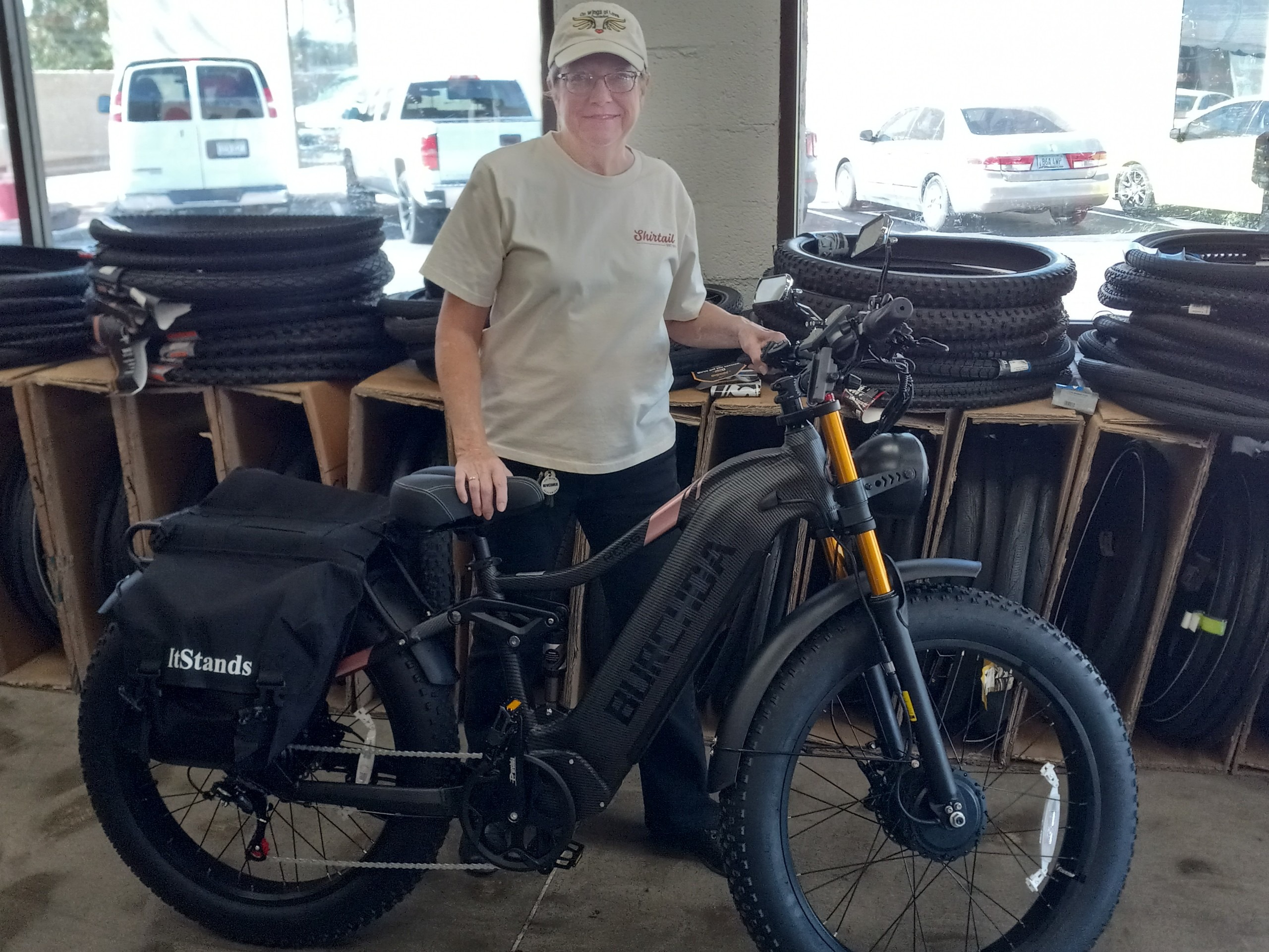 This is Susan, in the photo, and she has just celebrated three years of sobriety along with her 66th birthday. She has been riding a pedal bike for the entire three years; however, a few months ago, sadly, she lost one of her best sober friends. She was gifted his spectacular E-bike you see in the photo, and she was so happy. She could now get groceries, get to work, and get to her AA meetings much more easily.