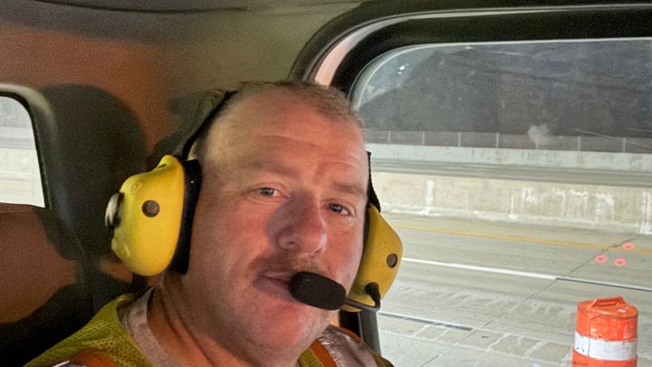 When he fell his hard hat fell off before he hit the pavement. He was rushed to the hospital by ambulance. Once accessed, they determined he broke his clavicle, 2 ribs, his temporal bone in his skull and has a few brain bleeds. He is very lucky to be alive.