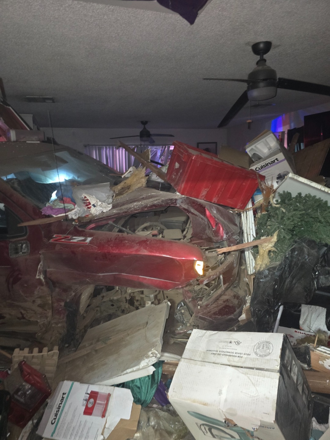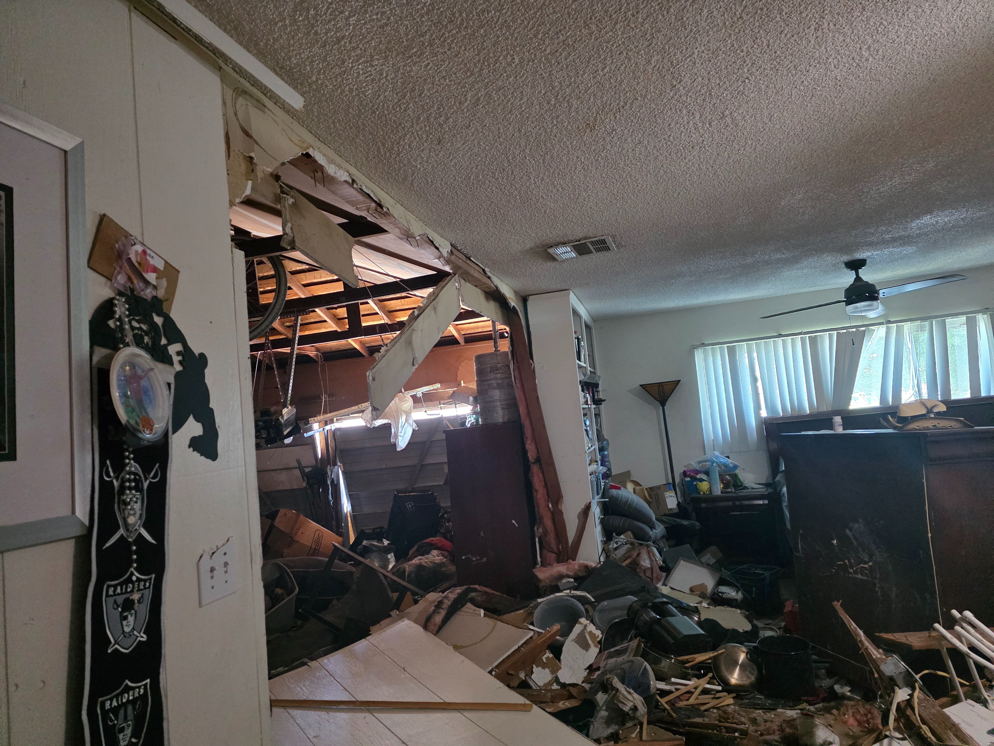 On July 3rd, 2025, two young men stole a truck and were trying to evade police. As they were trying to get away, they wrecked into a vehicle and lost control, sending them through our home. We have been unable to go through anything because we're waiting for insurance to send an adjuster out to give us the okay to start going through things.