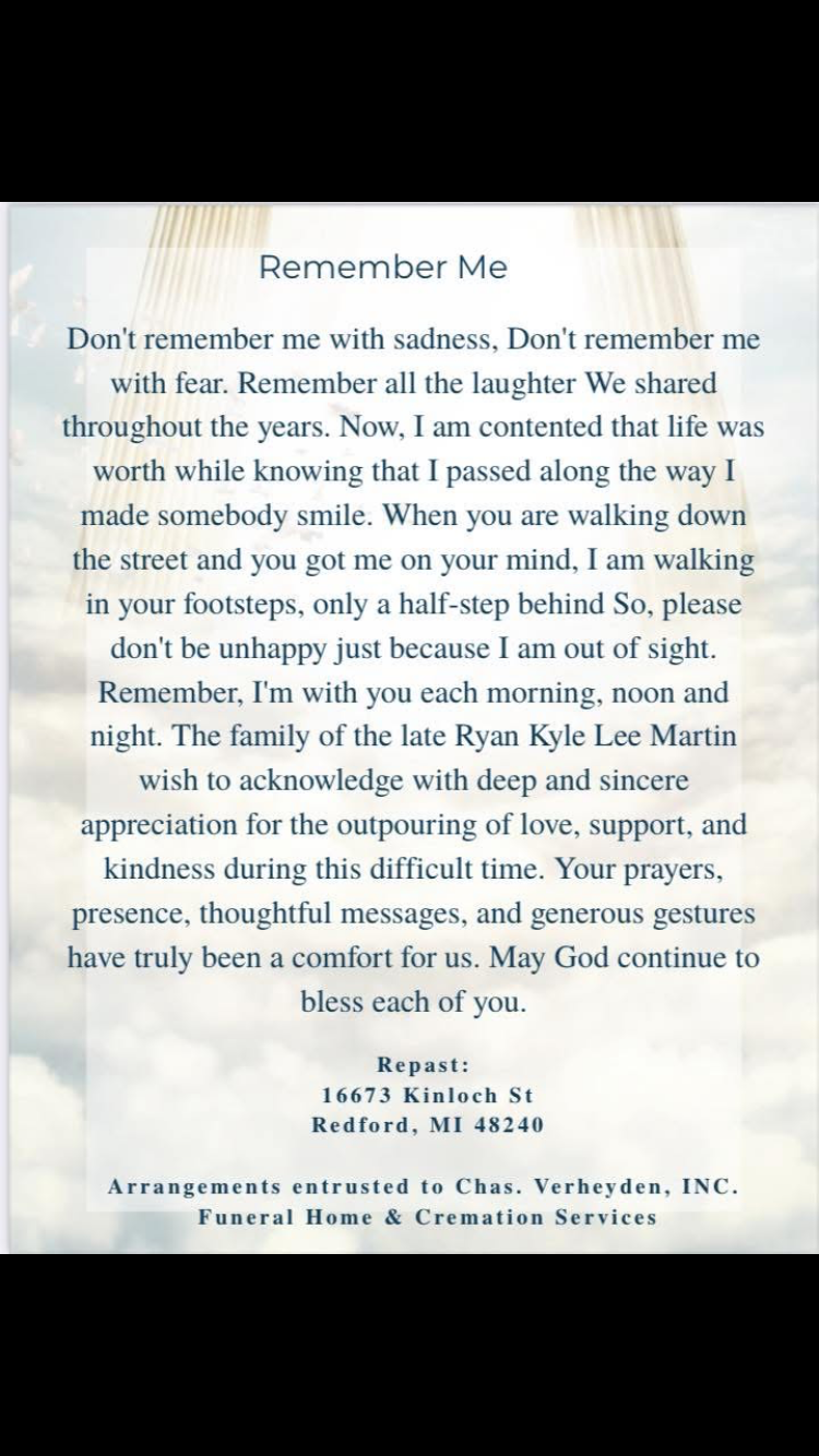Any contribution, no matter how small, will help us honor our beloved Ryan with the dignity and respect that he deserves. Your generosity means so much to our family during this incredibly difficult time.
