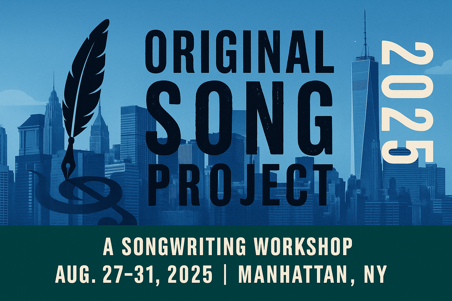 The Original Song Project 2025 is a 5-day immersive songwriting workshop for young adults (ages 18–40). Our mission is to create an artistic, constructive, and supportive space for young adults to inspire the writing and sharing of original songs.