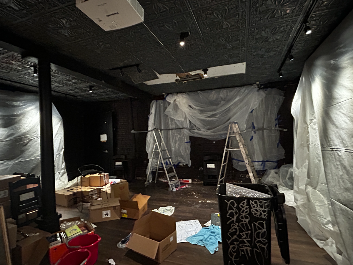 Over this past weekend, we discovered that the water damage is more widespread than we initially thought and will require us to replace the ceiling in the back of the shop. While these repairs are being conducted, we have no choice but to close the store. The first few years of any small business, especially a bookstore/cafe in NYC, is an incredible challenge, and being forced to pause operations after less than 2 months is devastating for our small team.