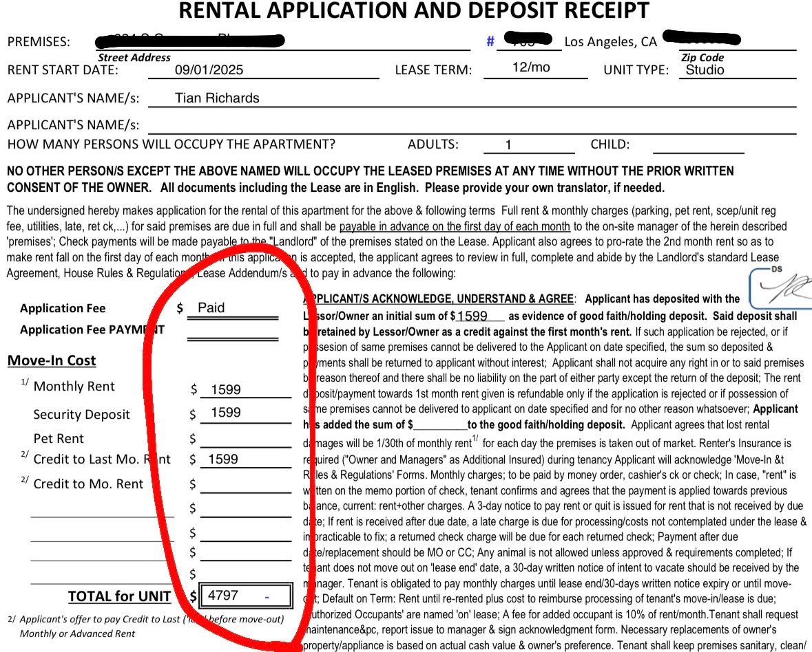 For the last 3 years, I’ve been putting my life back together. I lost my apartment during the strike in July 2023. My car was repossessed a year later when I couldn’t maintain the payments. That TANKED my credit. Through the goodwill and kindness of MANY friends, I have slept in guest rooms and on couches for the past 2 1/2 years. I know that’s many of our stories here in LA. I’m finally able to rebuild my life and have a place of my own again. With crap credit, the only way I was able to do that was by paying a high deposit, 1st and last all upfront. I got rejected from 5 prior apartment applications and this was the only place that would accept me with less than fair credit and no co-signer/guarantor.