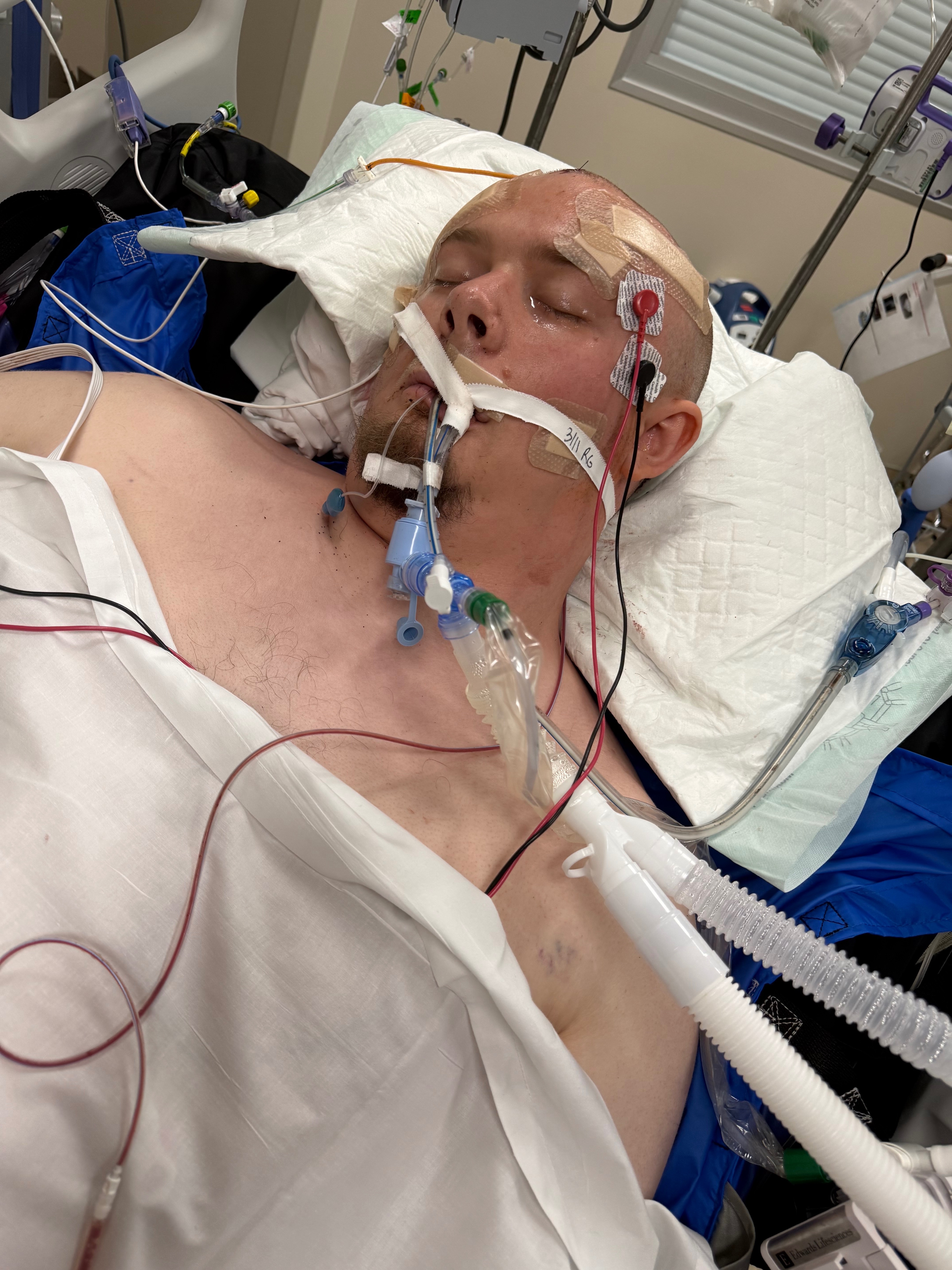 He has already gone through emergency procedures to relieve the pressure on his brain, and every hour still feels critical. Now that he is off sedation, we are holding onto hope for signs—any movement, any response, anything that tells us he’s still fighting in there.