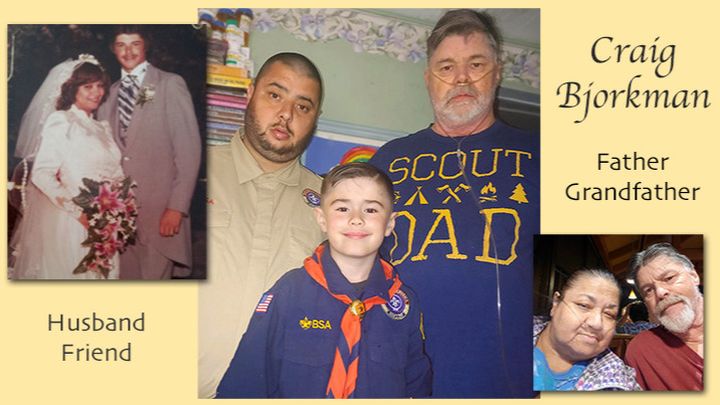 Hi, My name is Craig Bjorkman. I am 66 years old and live in Indio, CA. with my wife Debbie, of 41 years. Our son Adam and our grandson Aayden also live with us. Adam is Debbie's caregiver and now mine. Adam (39) is not only our caregiver but a cub scout leader with Pack 50 (Indio) and Aayden’s leader. Aayden has lived with us since he was 3 months old.