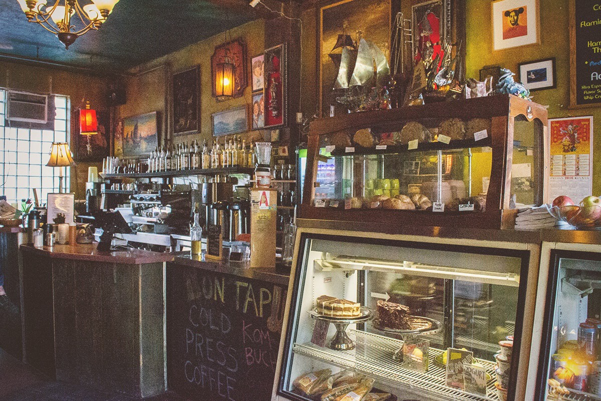 What a crazy uncertain time we're experiencing now. It seems we all have to say goodbye to our old way of living just out of nowhere. I find myself feeling especially strong feelings of love to all the people in my life that i wonder if i took for granted, and to the parts of my old way of living that meant a lot to me. One of those parts of my life I am referring to is the loveliest coffeeshop I've ever been to. I call it The Happiest Place on Earth™. I have spent a New Year's Eve sobbing to Brent at the counter right at midnight about how my life was going all wrong, as though he were some sort of bartender. Another time, I walked in Caffetto to see two of my very best friends giddy because they had JUST got engaged. I spent every other night here in college "studying" for classes with my best friend Maria, only to just end up talking the whole time while Kenny played Tom Waits in the background. Weddings have happened here. A cat (memorialized in a painting on the wall) "lived" here. If I need a hug, I know I can always count on seeing David with his Sharpies and coat of signatures.