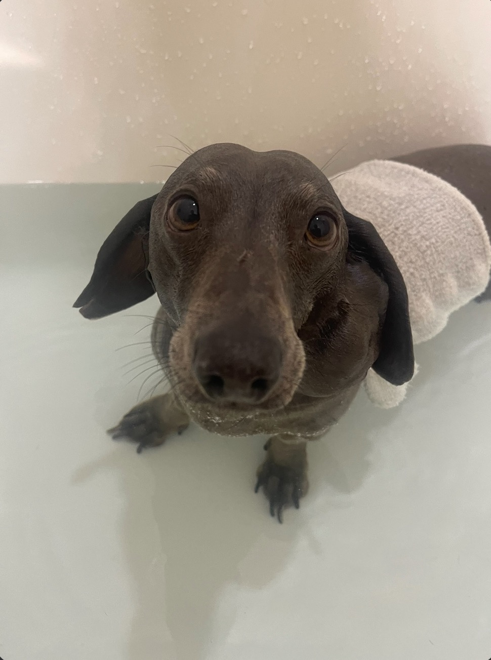 My name is Emma, and this is our beloved dachshund, Toby. He is such a sweet and affectionate boy. In 2021, we took Toby to a veterinarian in to evaluate a lump we had noticed and to explore treatment options. At that time, we were told we simply “needed to learn to love a lumpy dog” and to massage the area, as it would resolve on its own.