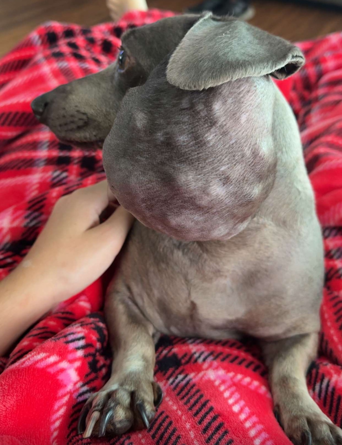Since then, we have sought further opinions, including from another veterinarian and an oncologist. We have learned that the lump is not cancerous, but rather a large, blocked salivary gland that continues to grow. Unfortunately, removing it would cost approximately $5,000–$7,000.