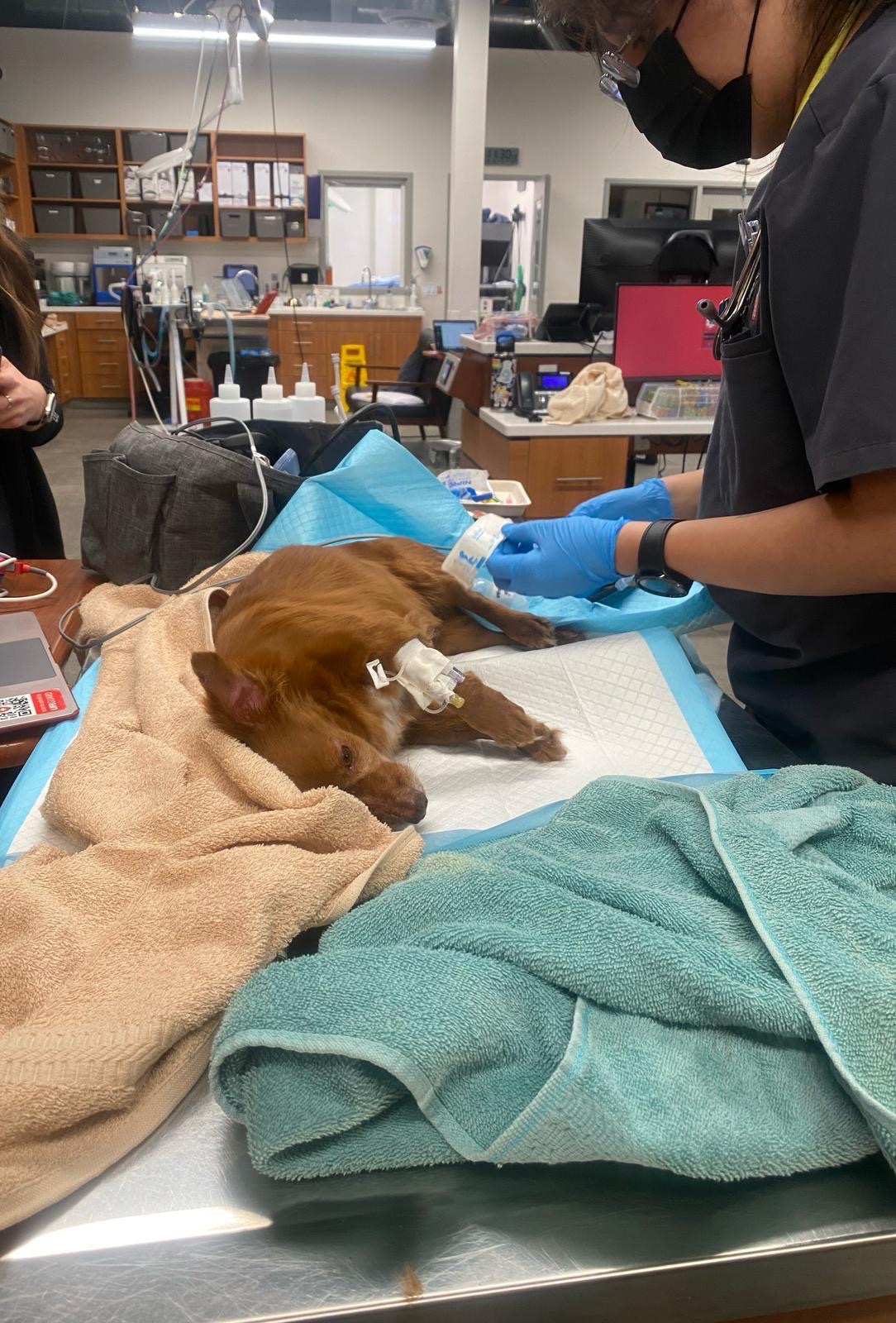 Thankfully, my Dad was home, and with help from our incredible neighbors, they rushed him to a veterinary ER where he was under 24-hour intensive care. Red has gone through a lot—he’s had a plasma transfusion and multiple treatments to stabilize him.