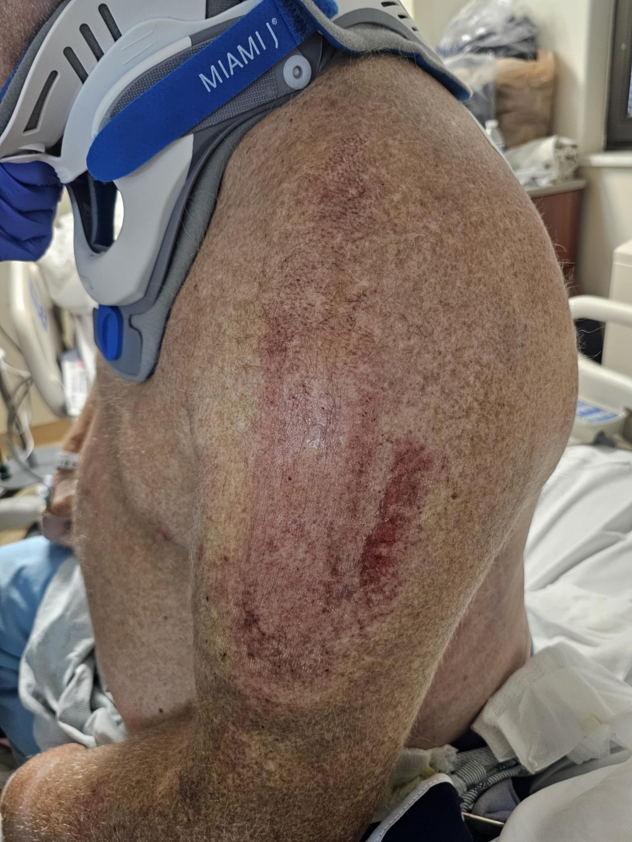 We are not able to disclose much due to ongoing litigation regarding the accident. Floyd has several fractures in his rib/neck area and a shoulder/arm that is currently being assessed for probable surgery. He is required to wear a neck brace for at least TWO months.