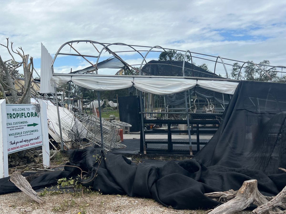 Hurricane Milton devastated us, along with our community of Sarasota, FL. Fortunately, in the past, we have been able to pick up the pieces and the plants after every storm, but this is different. Fourteen greenhouses, out of twenty, have completely collapsed on the plants and are unrepairable. Our nearly four acres of shade greenhouses are without shade. With the sun peeking through every day, we are unsure how many plants will make it.