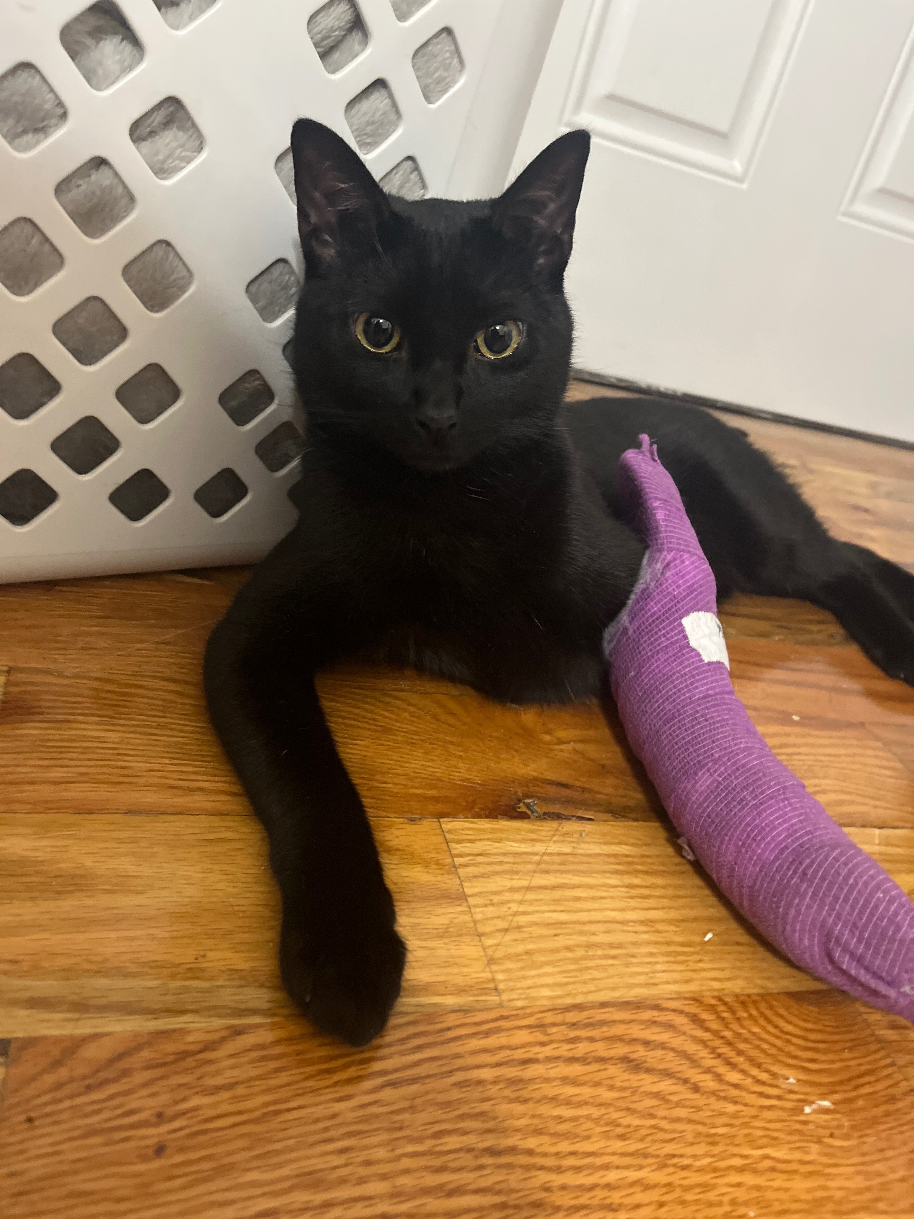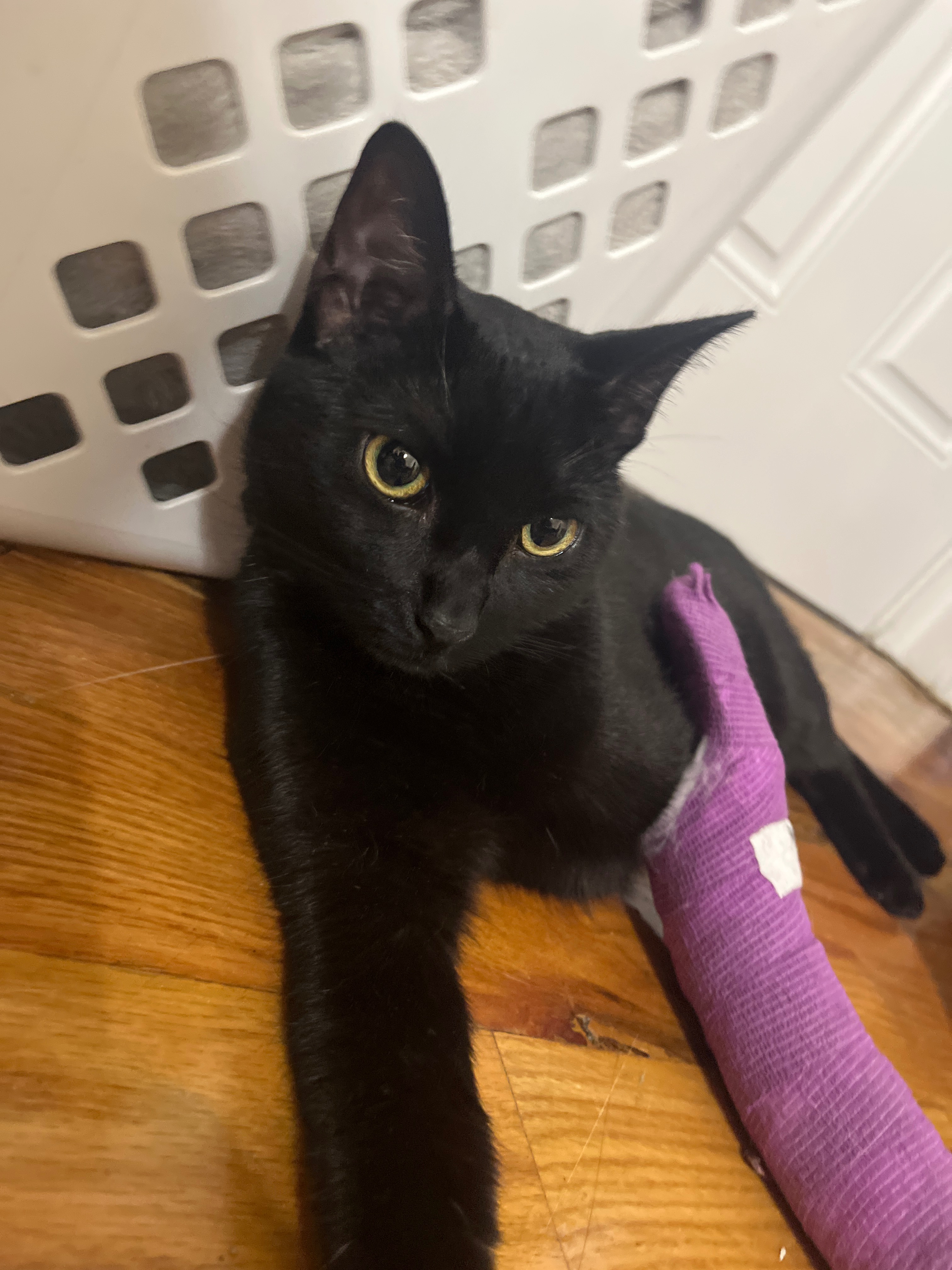 Tsar Bomba is quite the little rebel and loves climbing on things he shouldn’t. He pulled a sneaky one on me Monday night; climbed on top of my terrarium while I was asleep, jumped off, and broke his little leg :(